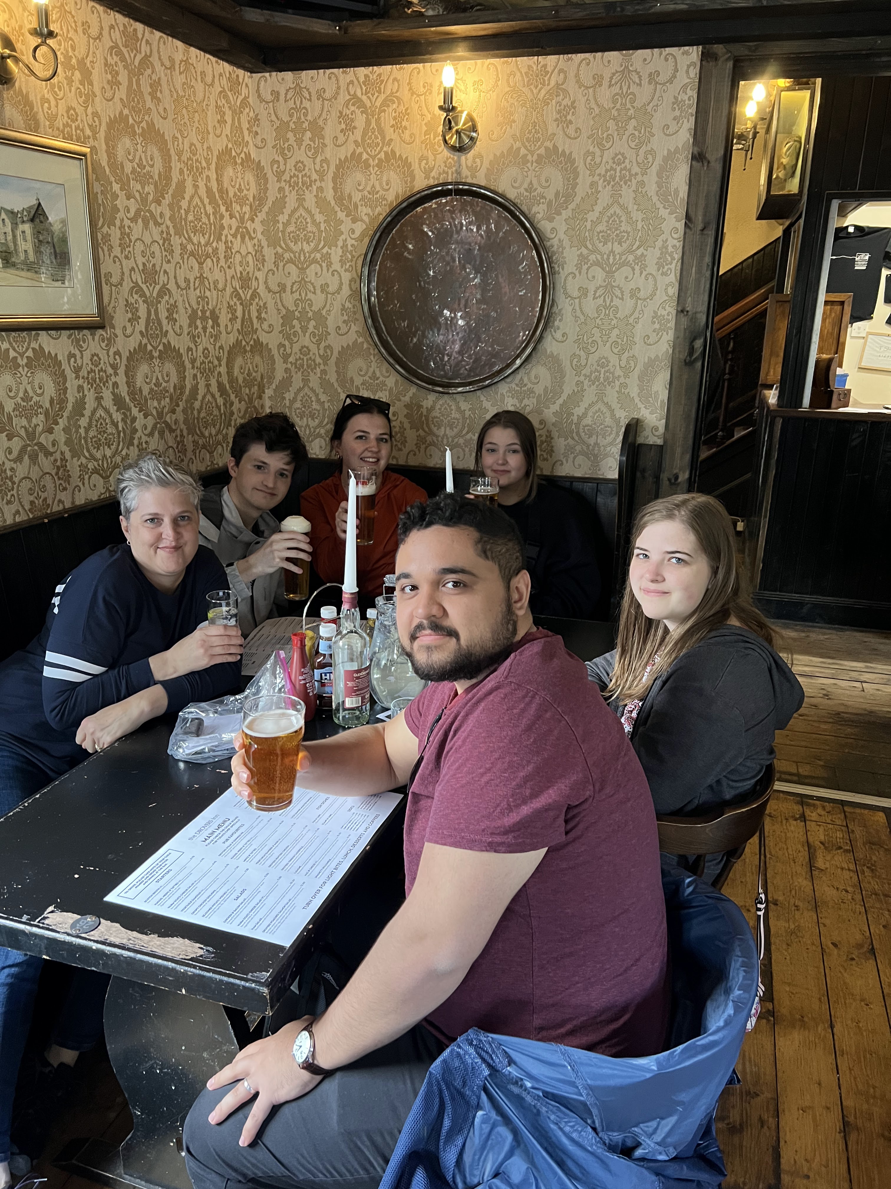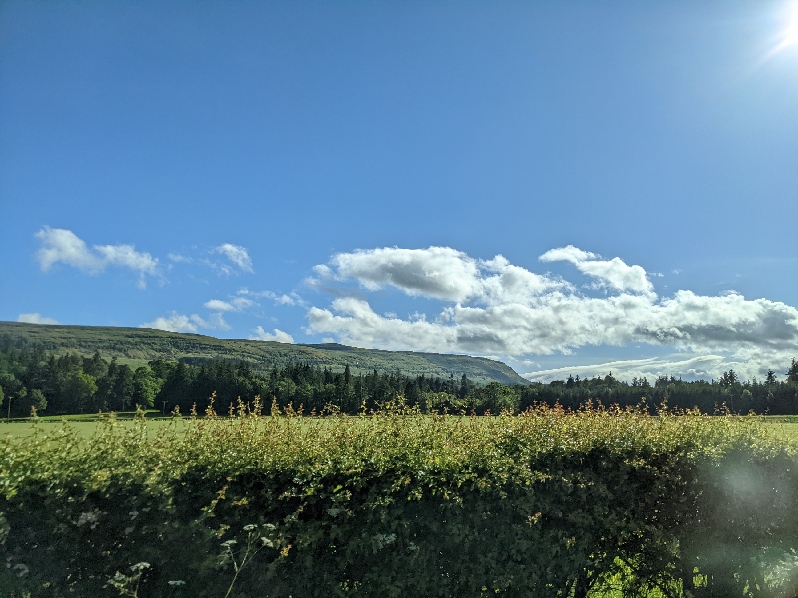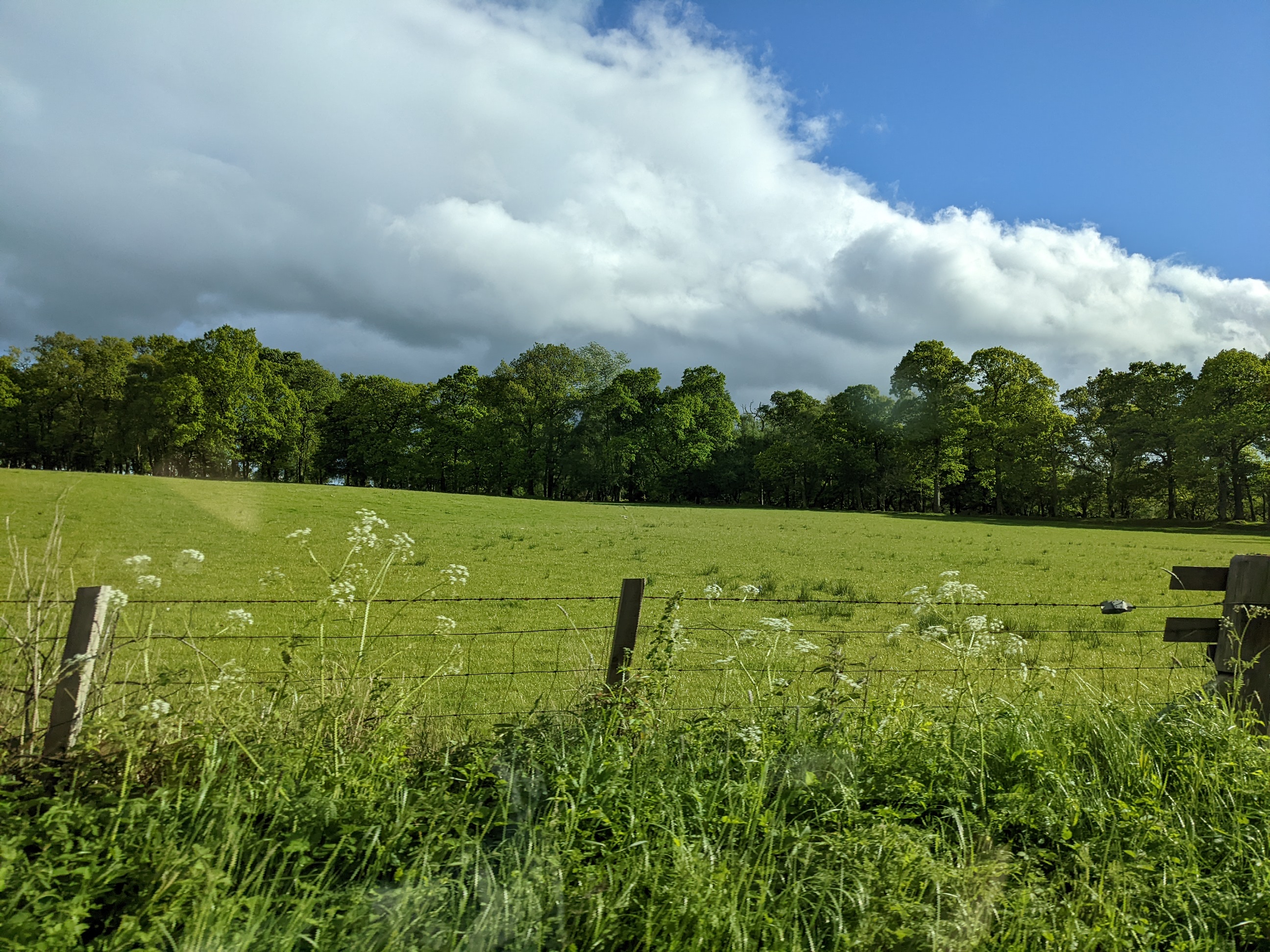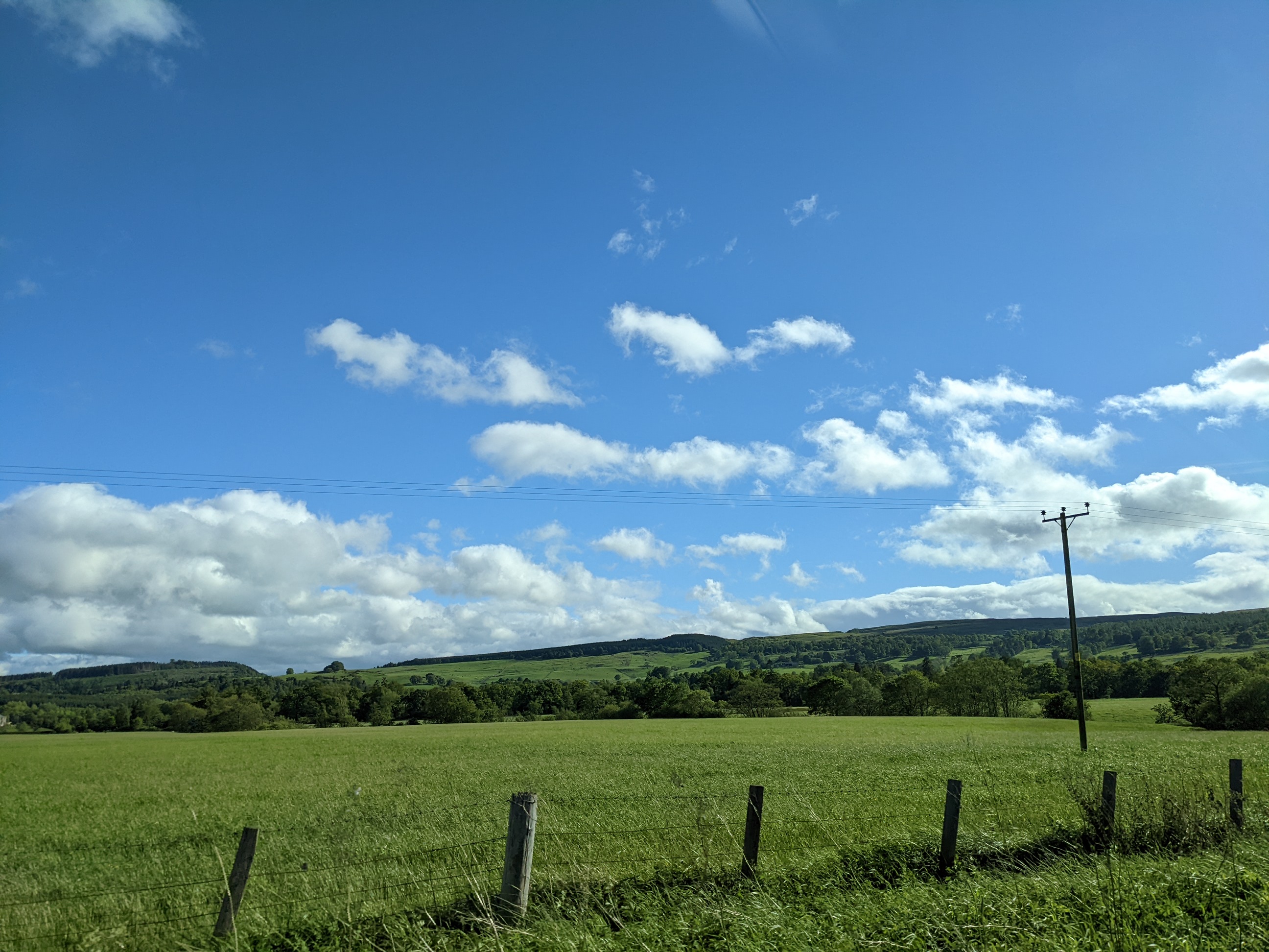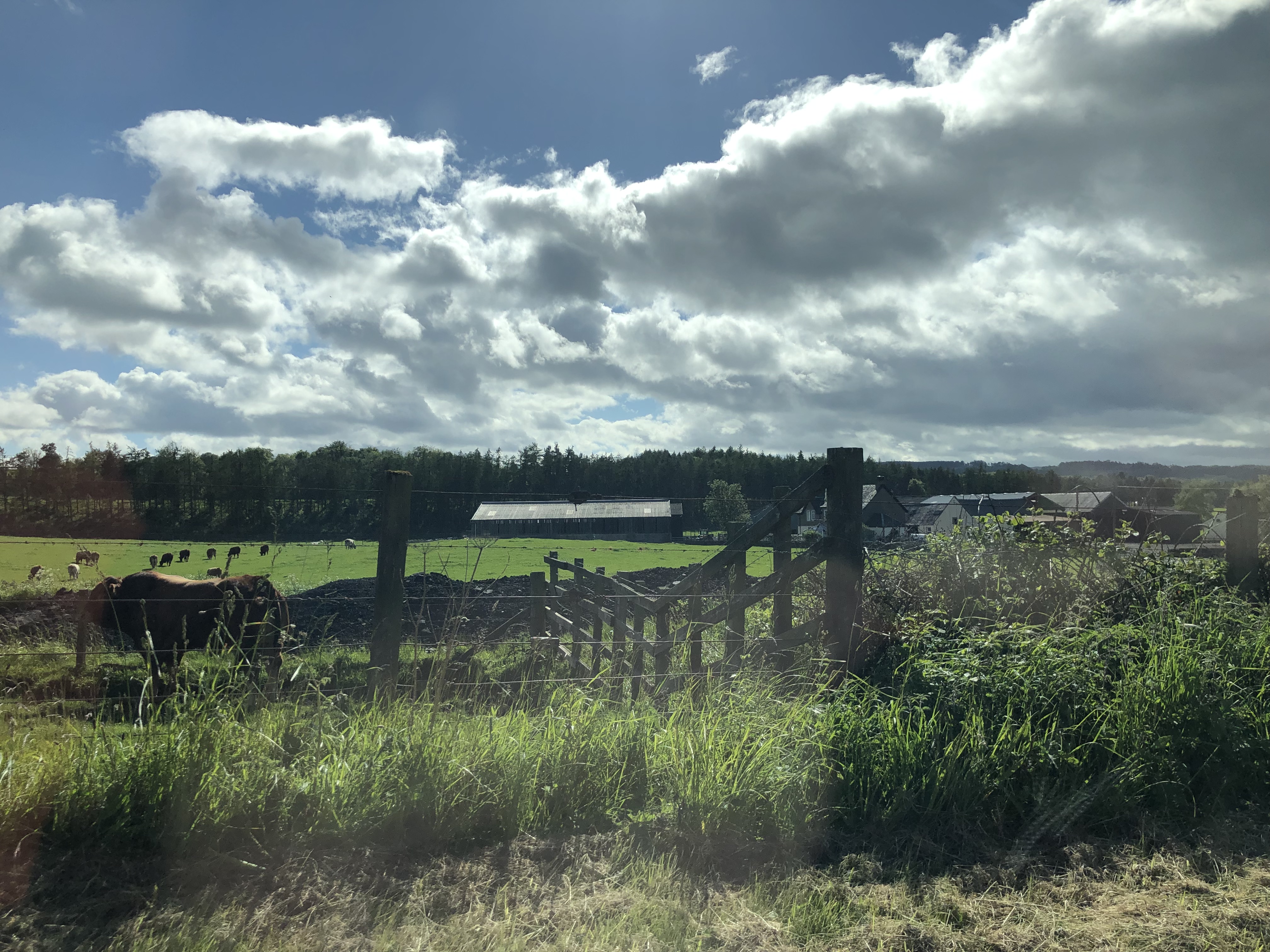 We have only good things to say about our pleasantly pedantic journey up to the Loch. Mid-afternoon on Friday, we took a direct tram from Edinburgh City Center to the Edinburgh airport (EDI). This would not be our last time here, but certainly our collective briefest time here. We picked up two snazzy Vauxhall SUVs from Enterprise (snazzy because of the orange one Mark had to drive; Ismael got a more dignified hunter green). Boy howdy, words cannot do the countryside justice. We tried with our phone cameras, but until you’re confronted face to face with the sheer perfection of rolling hills, sheep and cows as far as the eye can see, and little weathered farmhouses, you haven’t lived! And at dawn, when we drove back to EDI a few days later, it was enough to bring a tear to our (Jordan’s) eye. Our drive seemed to be a common one taken by Glasgow and Edinburgh natives for a weekend on the lochs, so we felt properly local at this point.