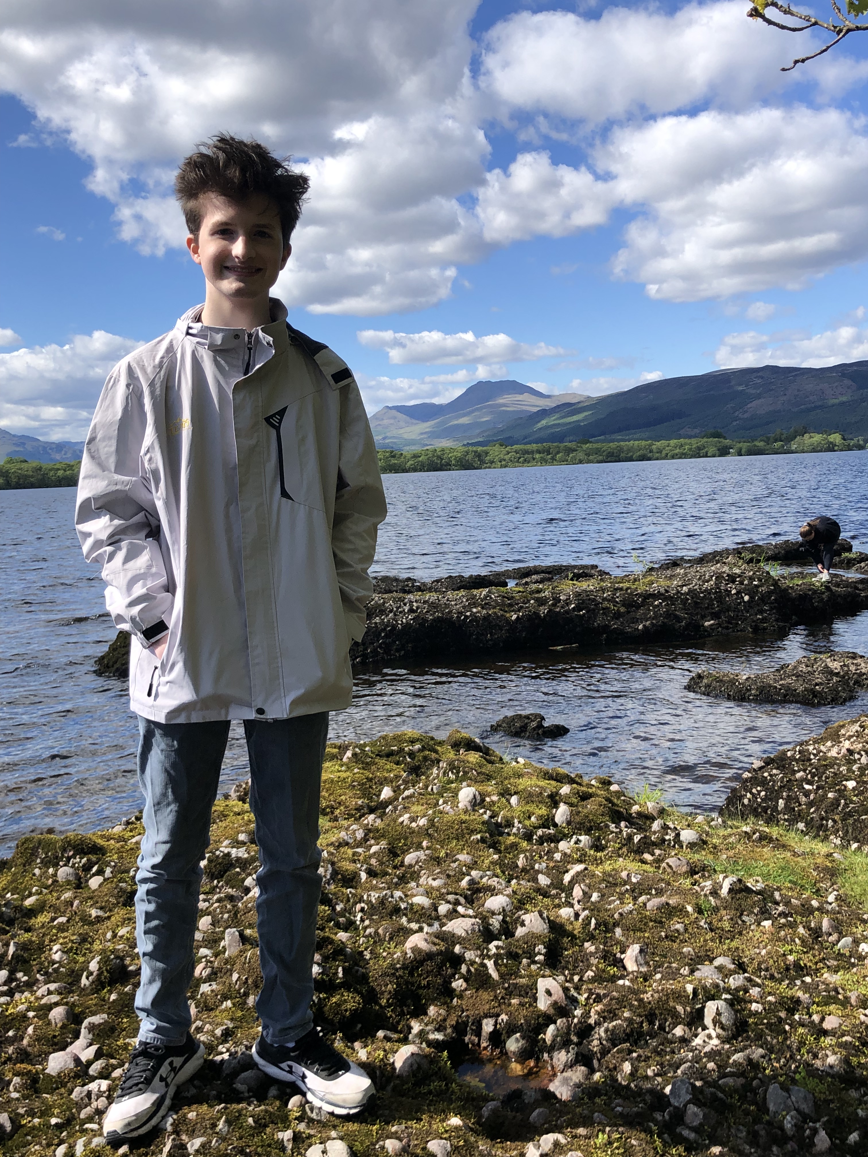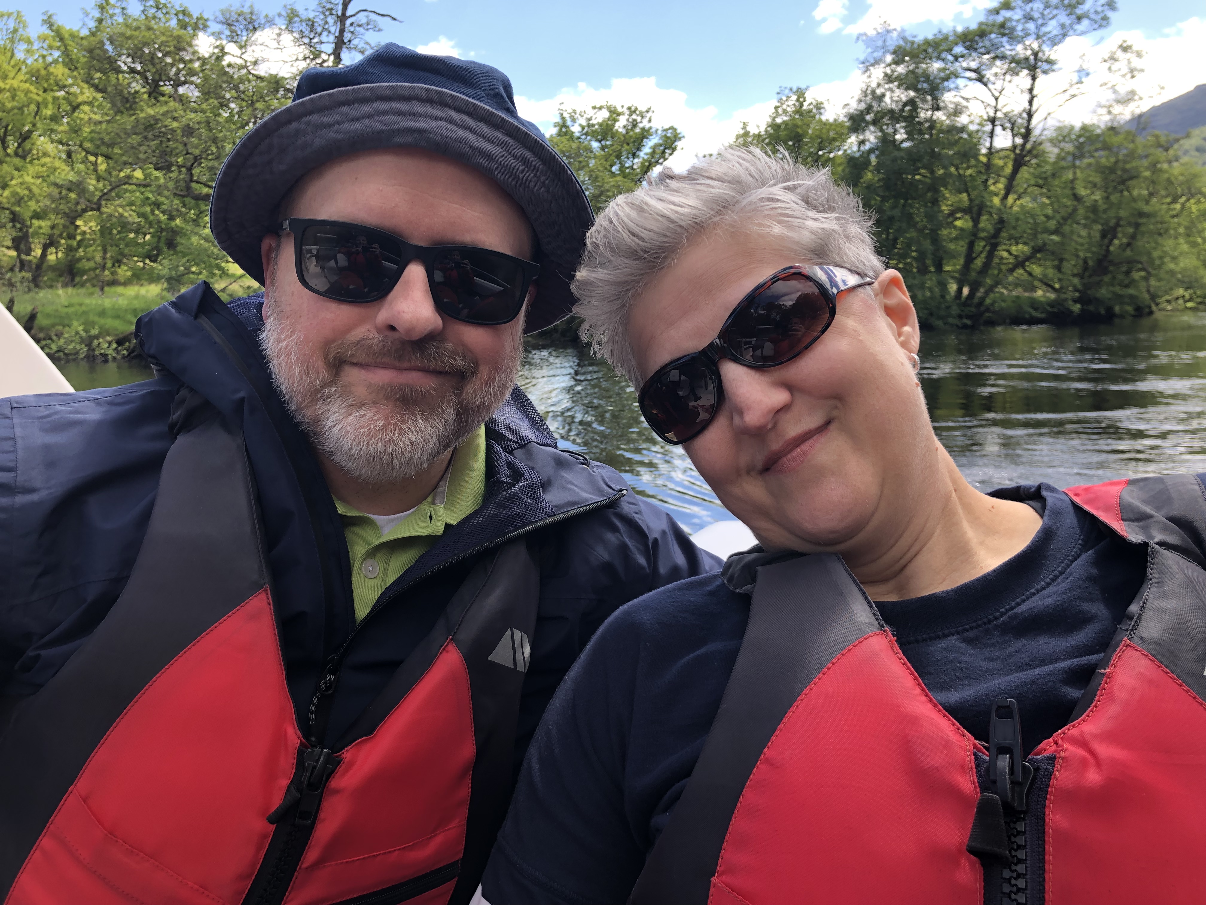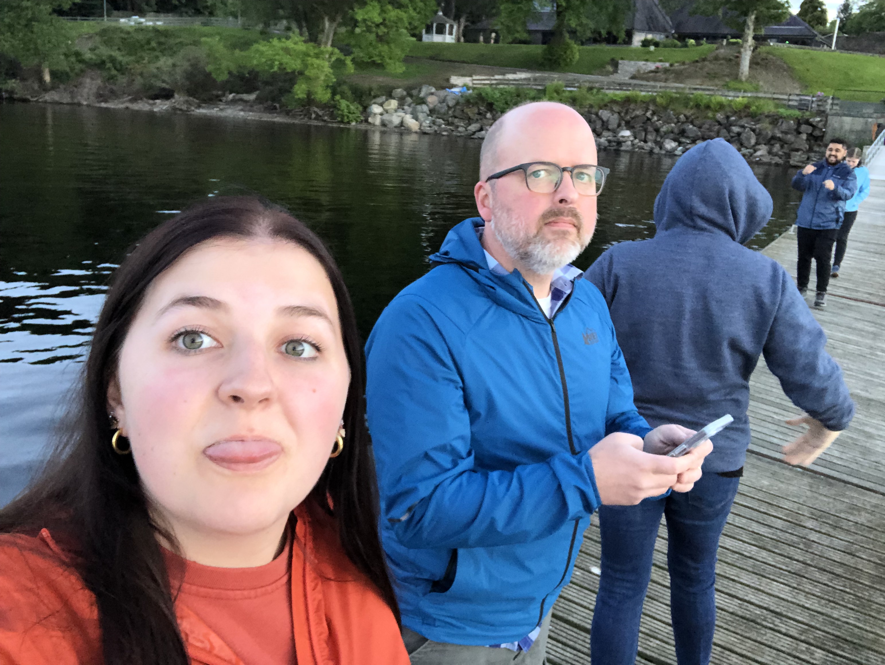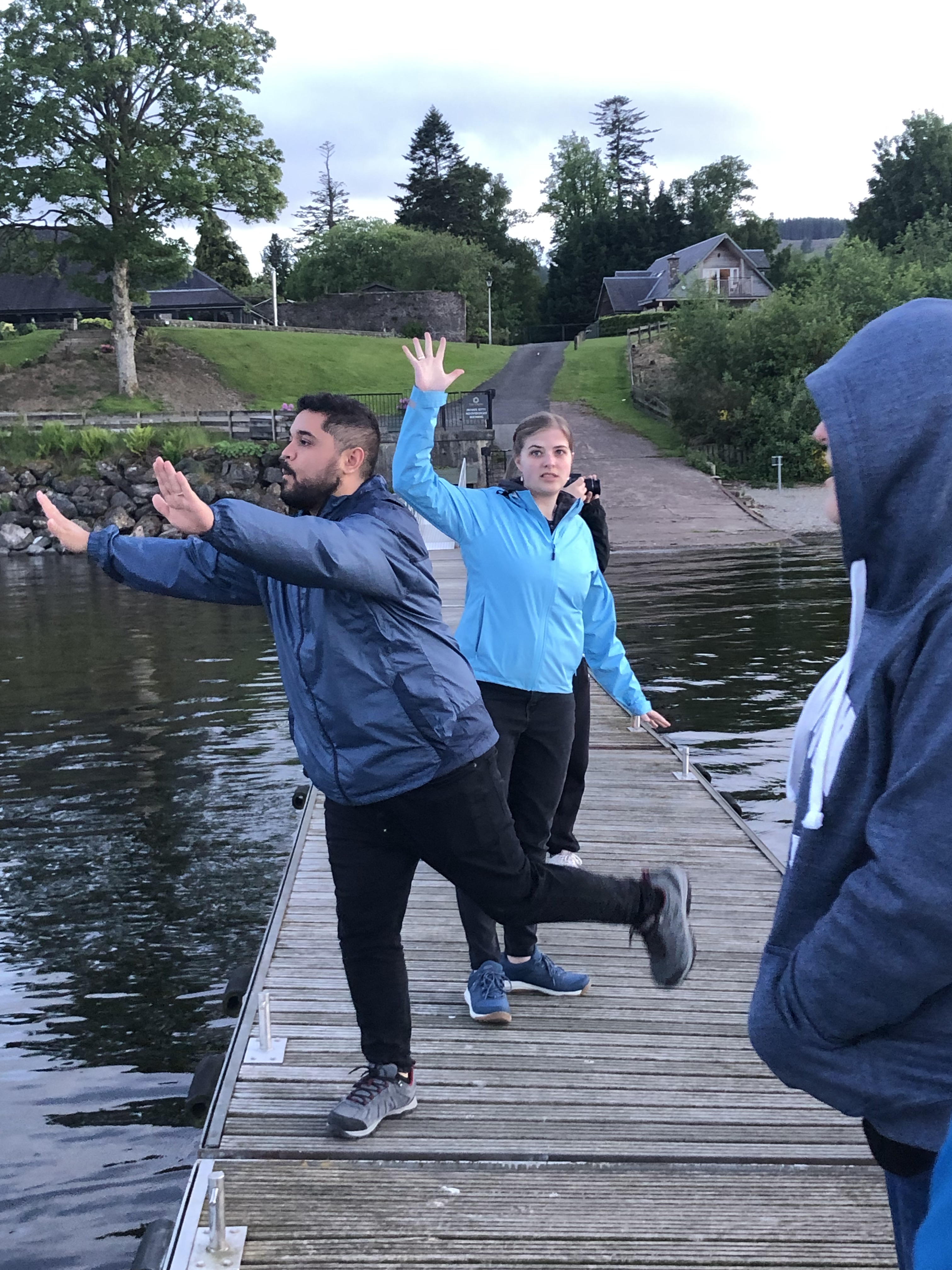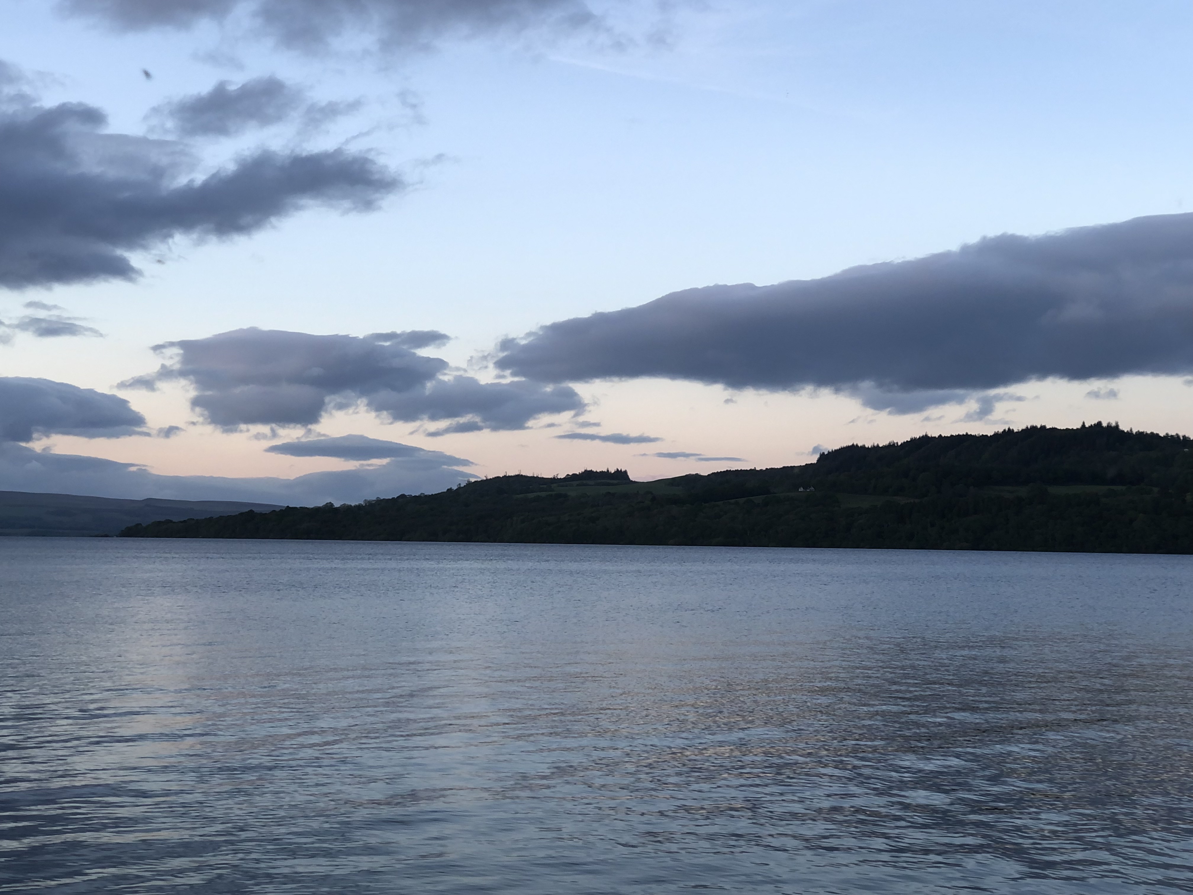 A brief comment here on our position: we forgot until arriving just how far north Scotland really is. For reference, it is on the same latitudinal line (56 degrees N) as Newfoundland, Moscow, and Copenhagen. The sky remains light until nine or ten PM every night, with a prolonged twilight that feels very magical. The temperatures stayed in the cool fifties and sixties, and that first night, after a pasta dinner, we strolled on down to the dock connected to our Airbnb property and just stared out at Loch Lomond. But of course, goofiness ensued. And after, some more Wheel of Time :).