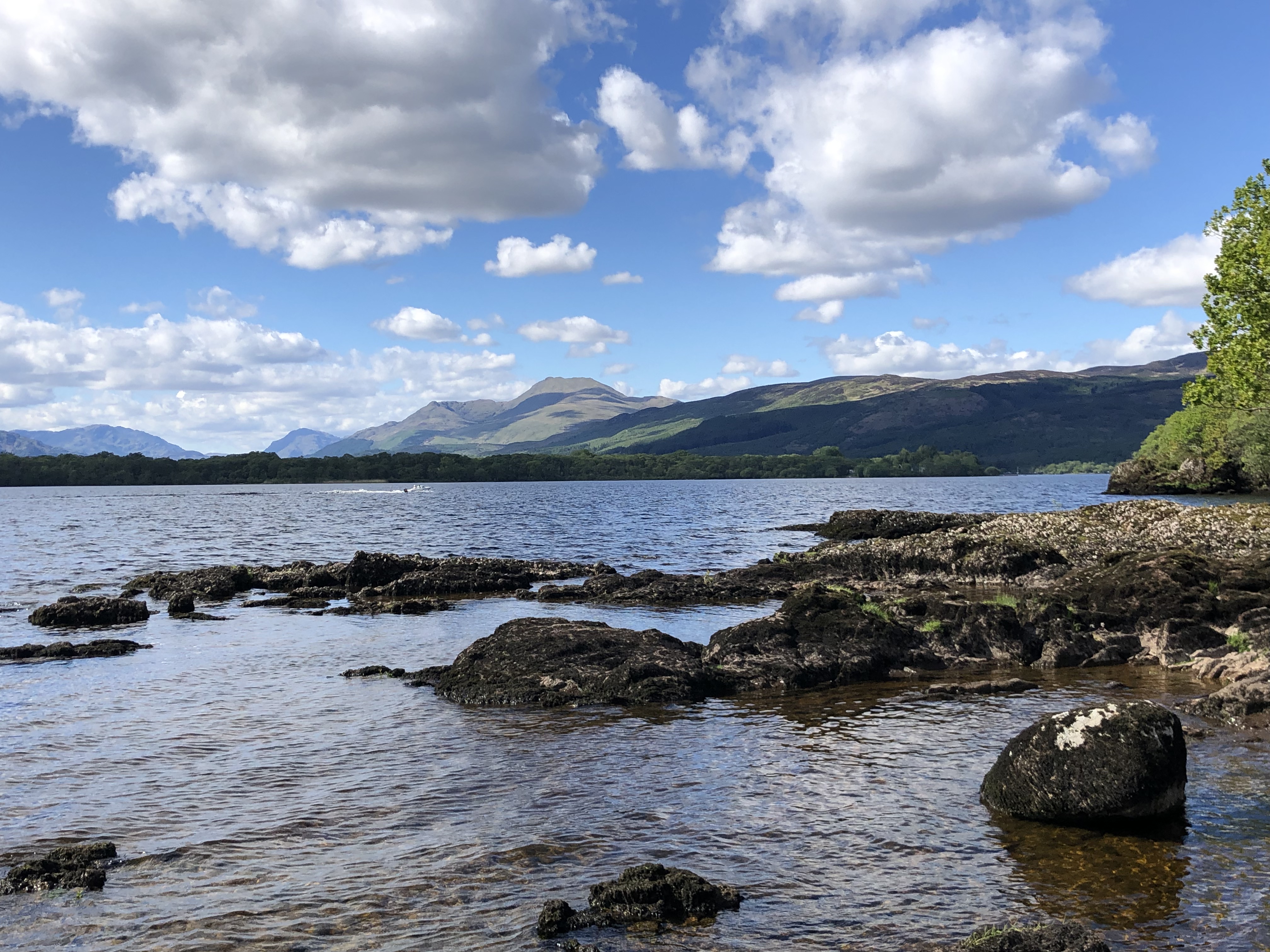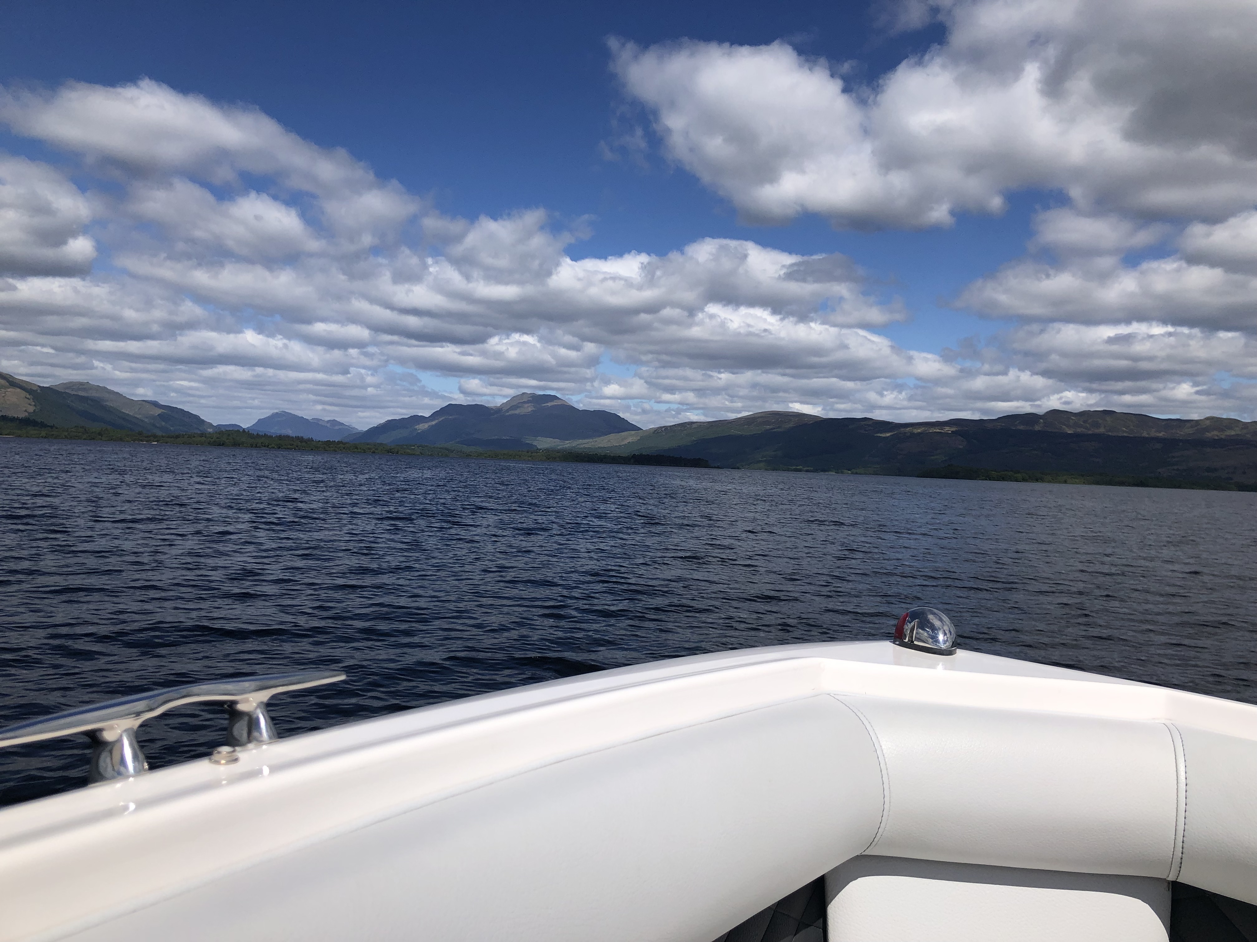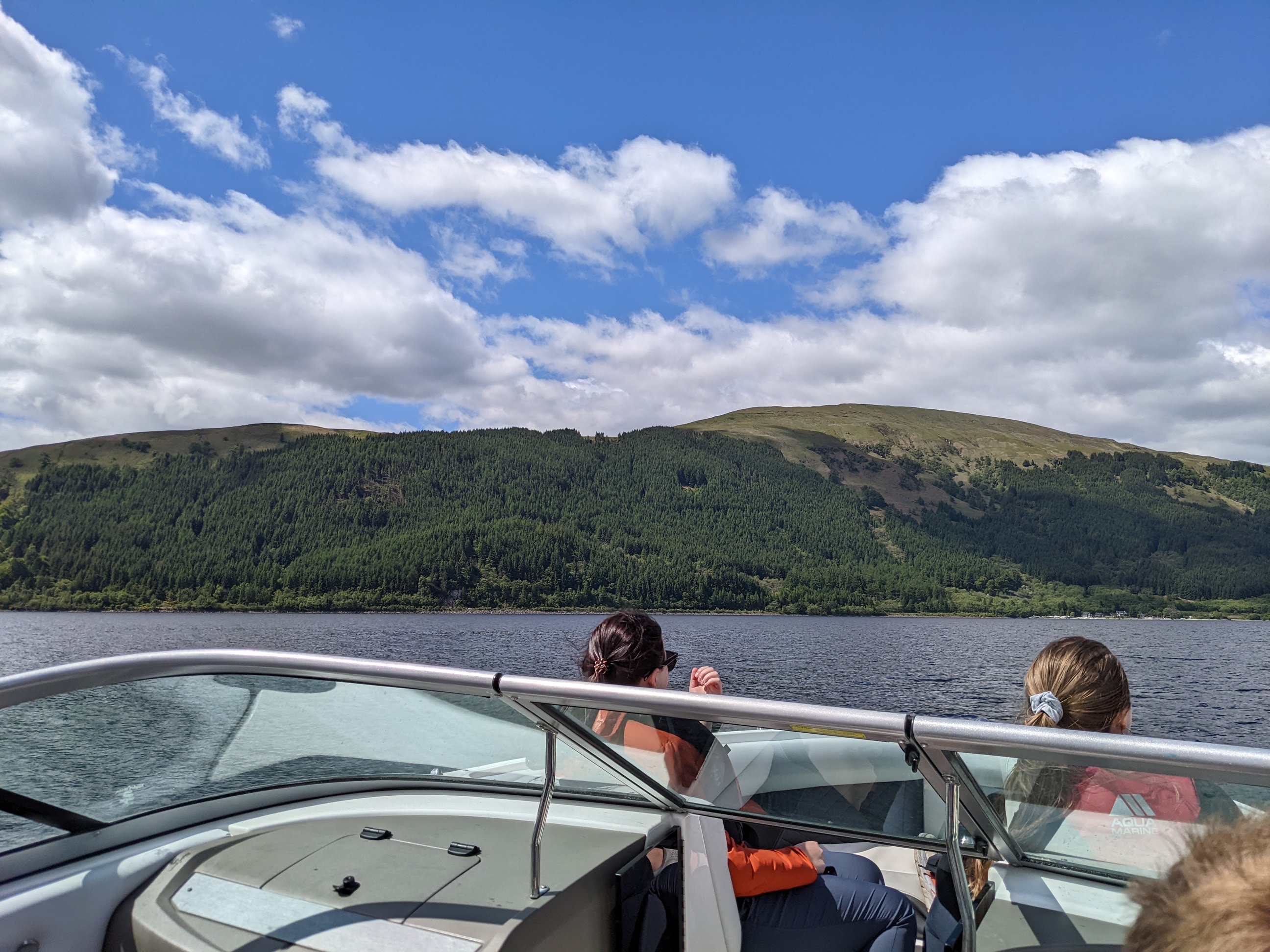 Ah, Chris. Chris, Chris, Chris. Where to even begin? A few months ago, when we were deciding what to do on Loch Lomond, Jordan found a small organic farm online, Portnellan Farms, run by the son of sheep farmers, with a history going back many generations. This guy, Chris, maintains the farm for his parents today, and has supplemented their income with speedboat tours and water equipment rentals. We signed up for a private speedboat tour of the whole loch, and you best believe, our homie Chris delivered. We rocked up to the farm and wandered right on down to a gravel path leading to the dock, where Chris helped us on board and let us pick our itinerary for the day. Over the course of five hours, he took us from the south end of the loch (see our Airbnb starred) to the north end where the loch trails off into the River Fallach, and back again.