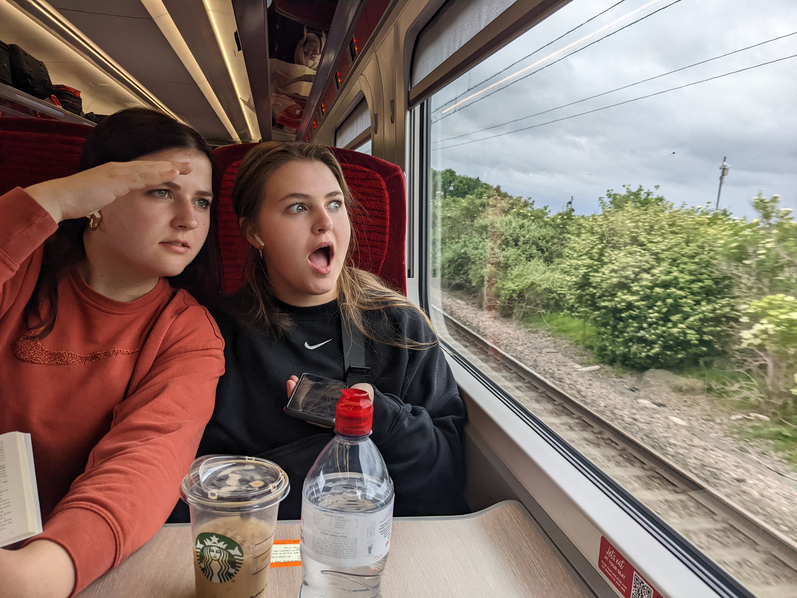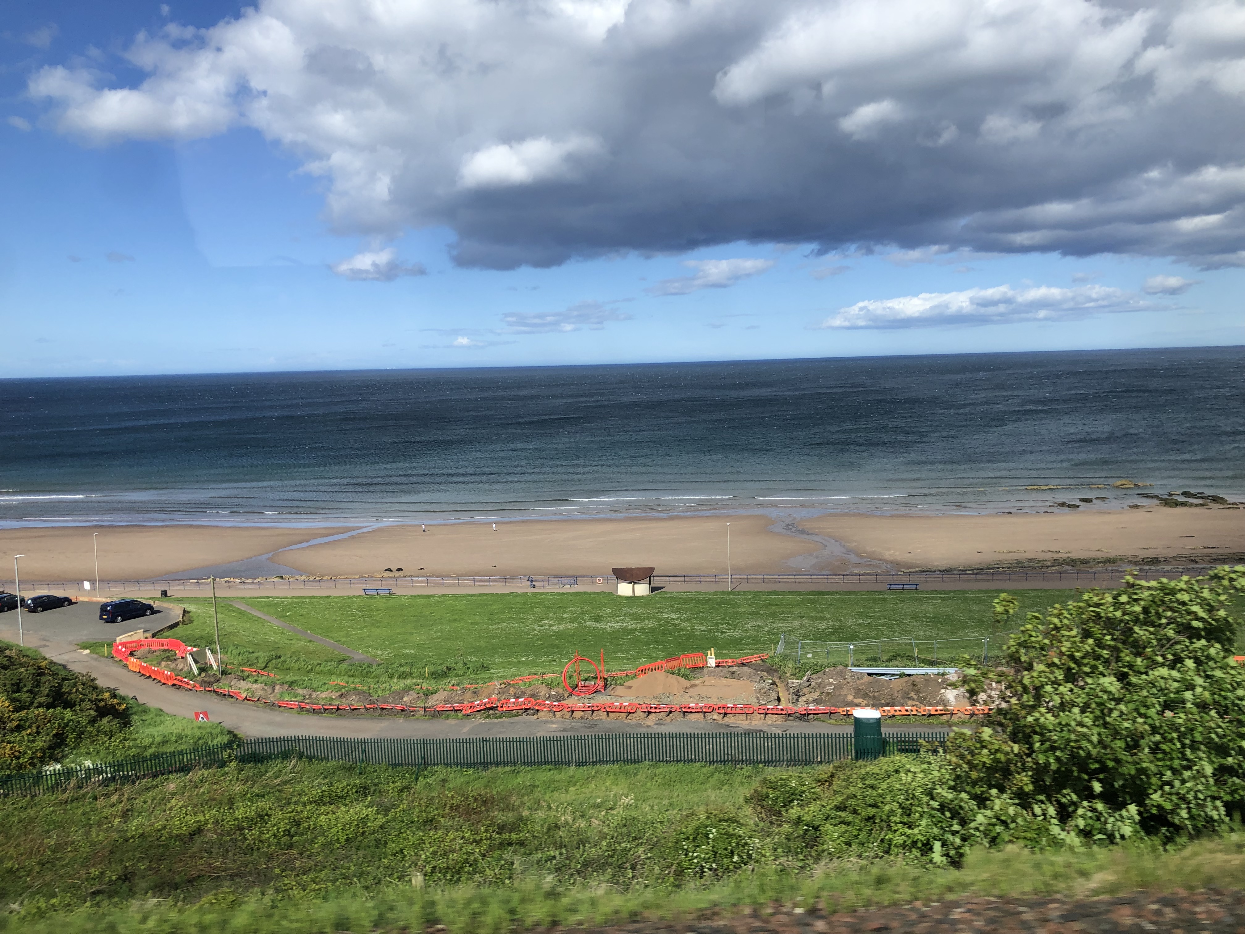 We took a 4.5 hour LNER (London North Eastern Railway) train to Edinburgh, making a few stops along the way, most notably at Newcastle. This is where Dad’s coworkers with Xplor are based, and he spent a good deal of time there on his last business trip. Weirdly, no one was too interested in hopping off the train and puttering around Newcastle, but some good photos were captured from the window :). Actually, the benefit of taking the train (and we came to value trains above all other modes of transportation this trip) was the relaxed environment in which one can take in the spectacular scenery of the English countryside.