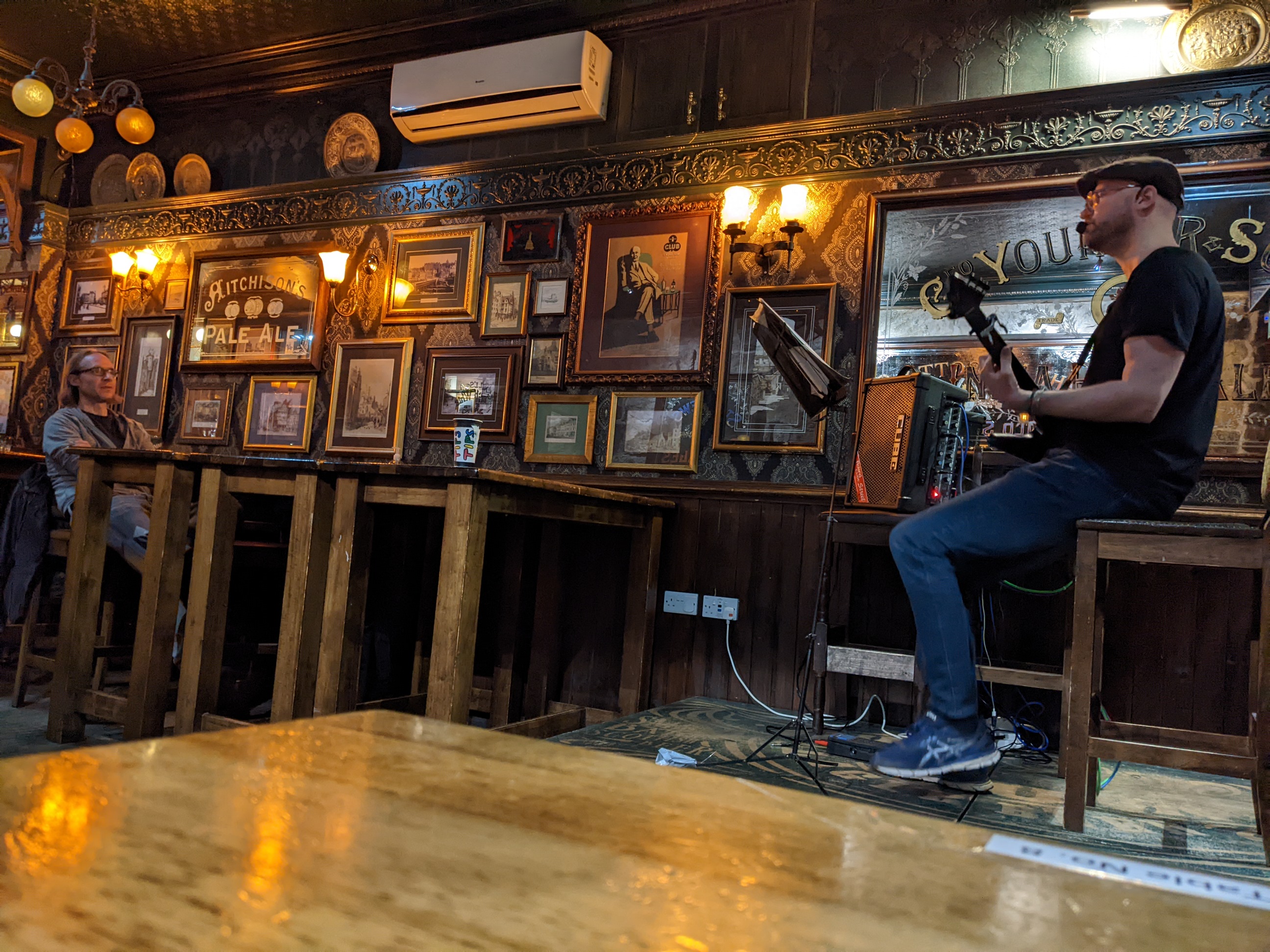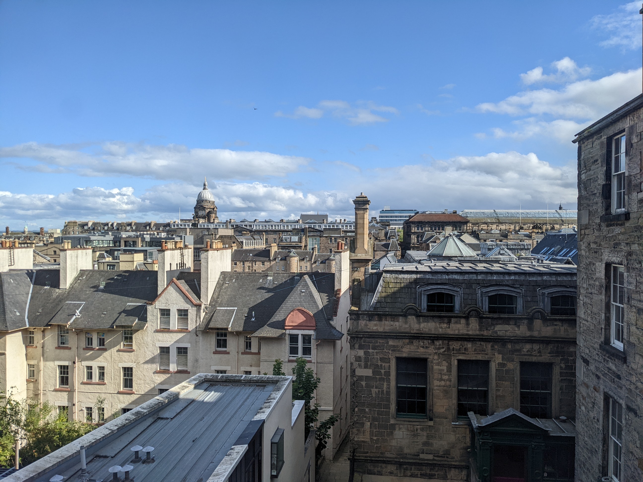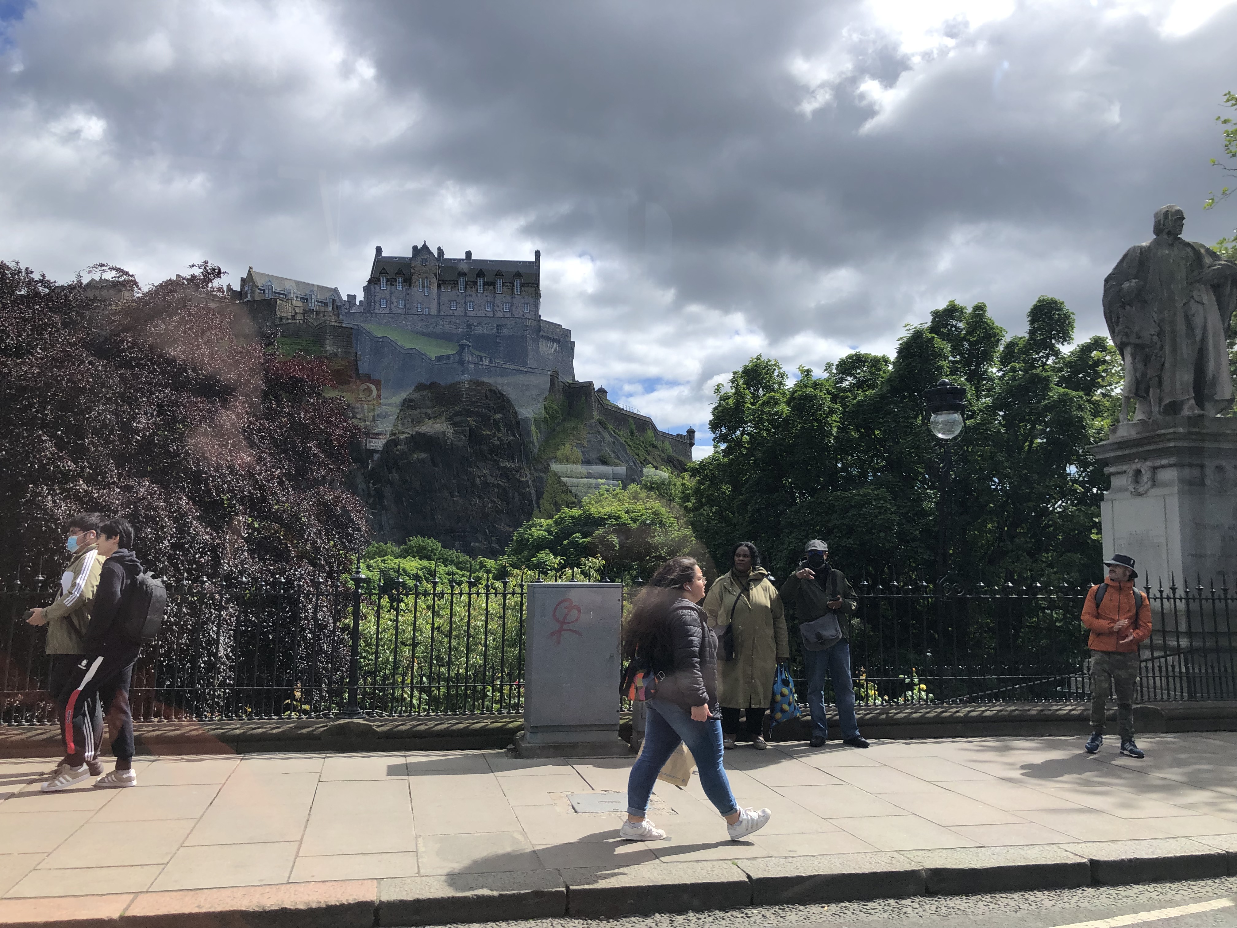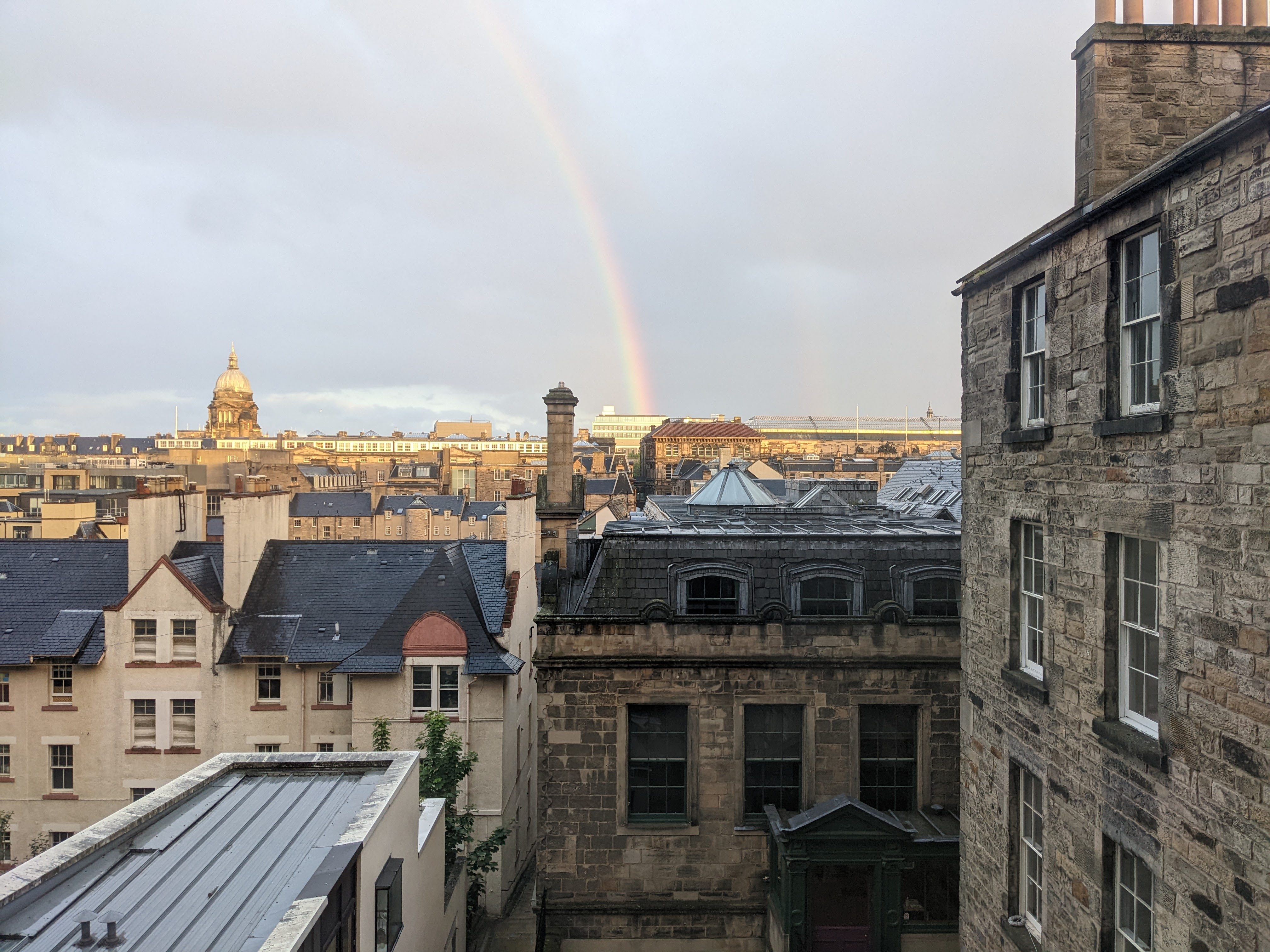 After settling into the Airbnb, furiously wiping brows and pits, we spent a relaxed night grabbing dinner across the street (shoutout Haggis Bites), and Mark, Avery, Ismael, and Jordan went wandering in search of a pub to haunt. Success came in the unlikely form of Your Neighbor Who Used to Be in A College Garage Band, aka a really cool guitar player who put a Scottish spin on virtually every classic American rock song you could think of. However, the highlight of the evening was undoubtedly the double rainbow skyline.