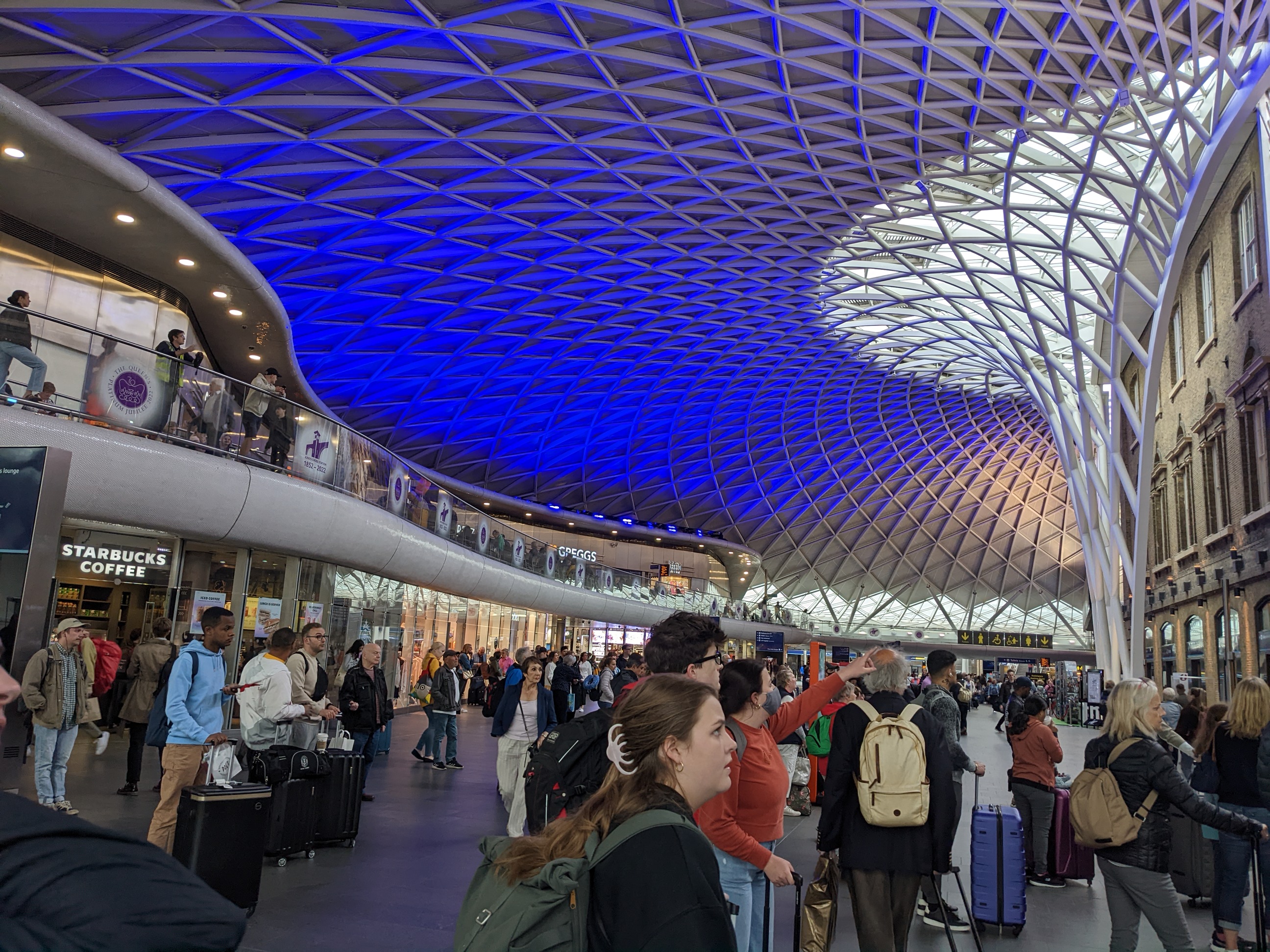 As much as we loved London, the highlands were calling, but not before we got a chance to feast our eyes on as much tartan, cashmere, and grey stone as possible. Thus, on a blustery Wednesday morning, after a final canal brekkie, we set off in a single file line – one suitcase and one backpack per person – for Paddington Station. Was it slightly harder than anticipated to find the right local train from Paddington to King’s Cross Station? Yes, and… we may have briefly lost one of our own once we did get to King’s Cross. But we were quickly distracted by the spacious dome of the station and some Starbucks to fortify us for our journey through the countryside.