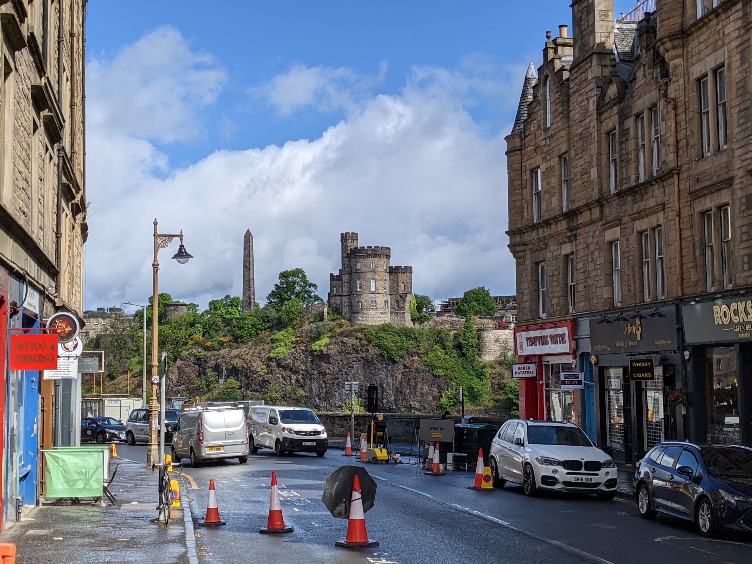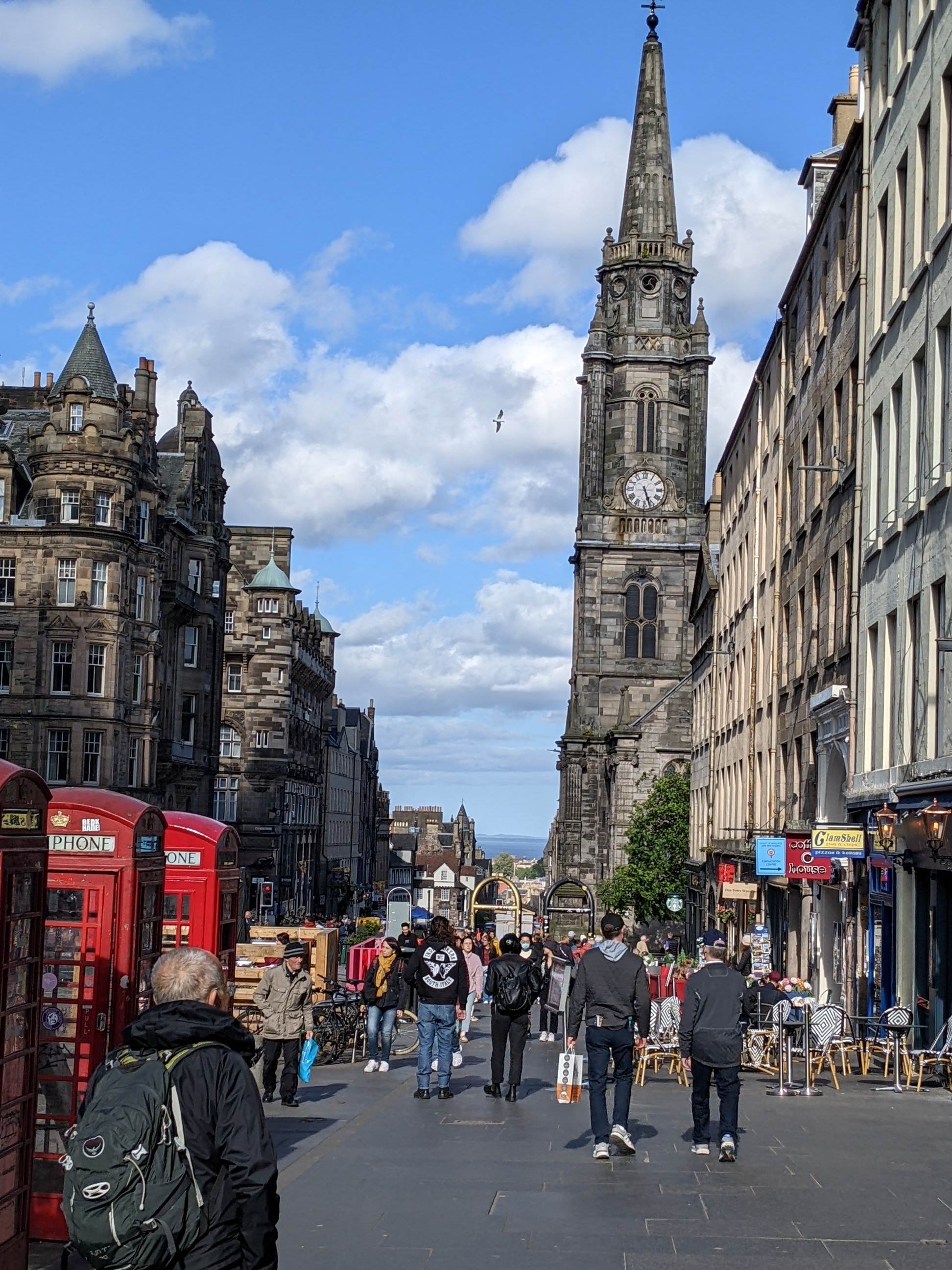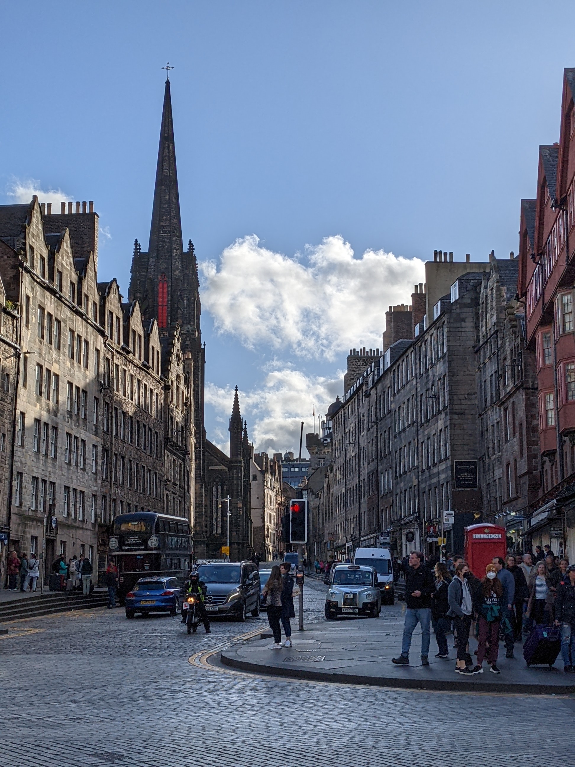Our huffing and puffing gave us a chance to take in the beautiful, albeit very touristy, expanse of the Royal Mile. There simply isn’t any urban layout like Edinburgh in all of Europe, and we were often struck by stark contrasts between dark stone buildings, cobbles, blue skies, and sea views.