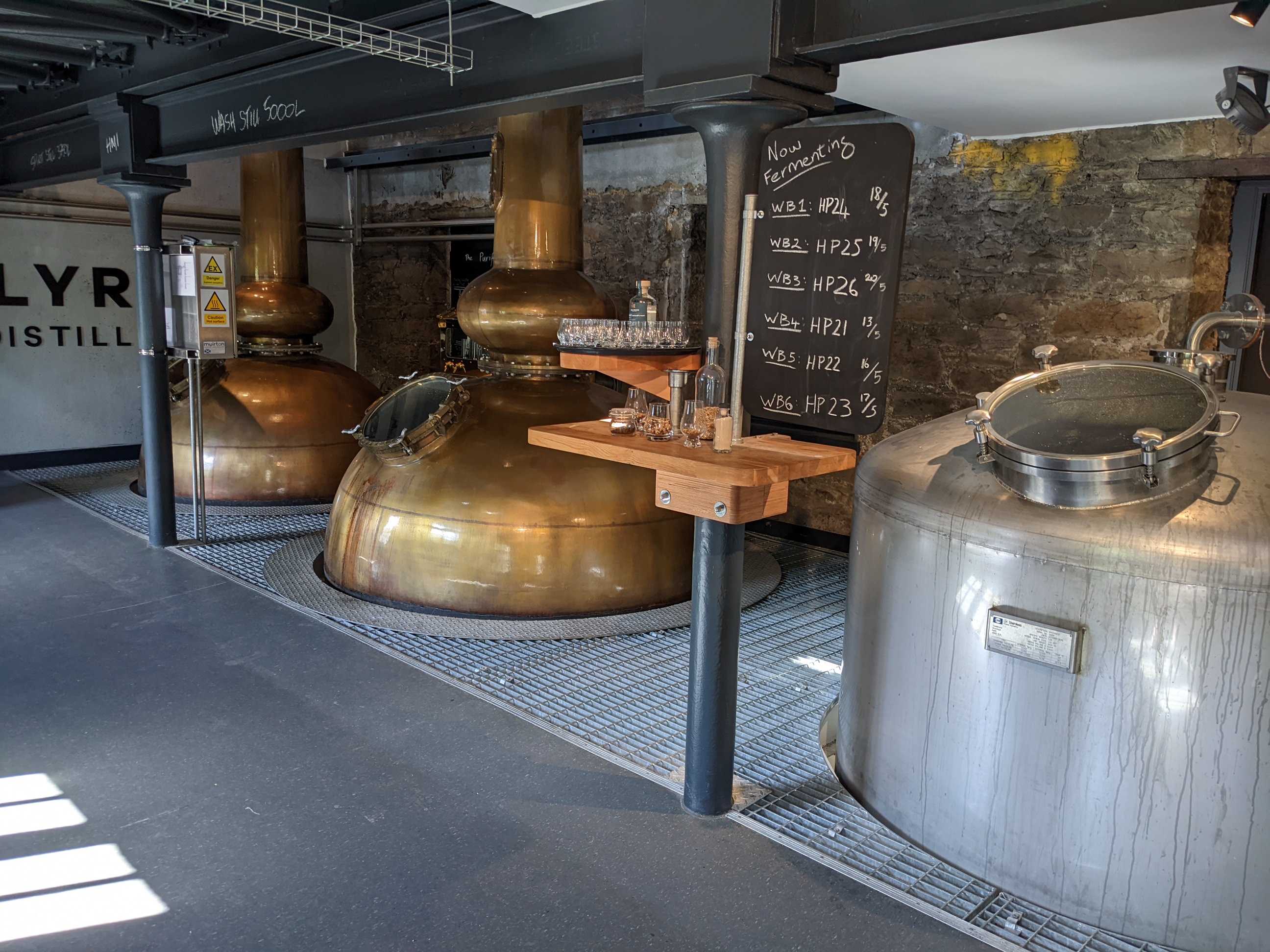 The real triumph of the day came in the form of a distillery tour at Holyrood Distillery in the heart of Edinburgh. But wait, you may be wondering, don’t they make Scotch Whiskey out west on the coast? Yes, yes they do, but we had an interesting opportunity to tour this baby distillery, only two years old, that plans to put out its first qualifying batch of whiskey this fall. They currently produce gin, but our tour guide taught Mark, Susan, Ismael, and Jordan all about aging whiskey in casks used for other spirits, and showed us all the very expensive equipment required to ferment and distill the whiskey. Jordan should theoretically remember more from the tour other than the wheel of malt, but after a certain number of complementary gin shots, she was mostly focused on the attractive Spanish-Scottish tour guide with the confidence of a Harvard professor and the energy of Pedro Pascal.
