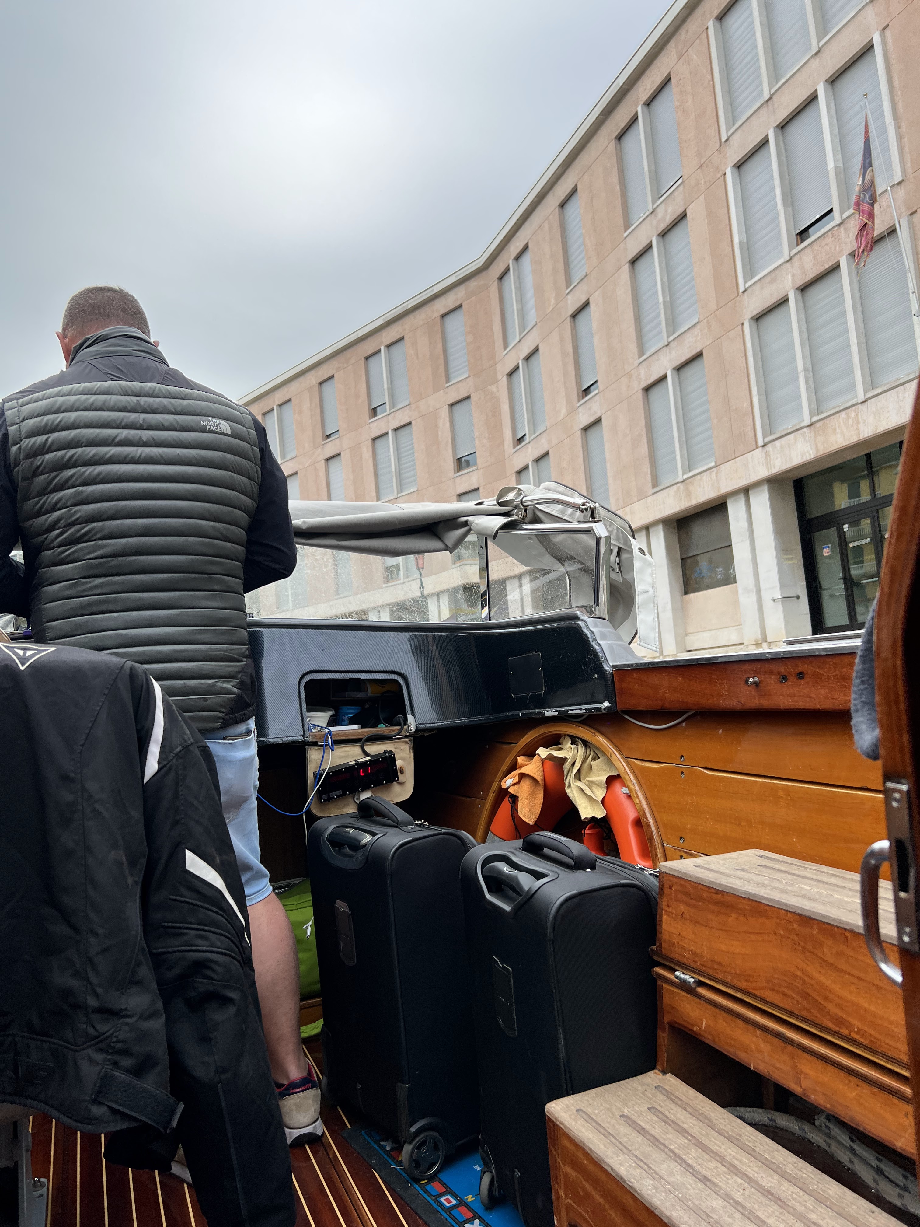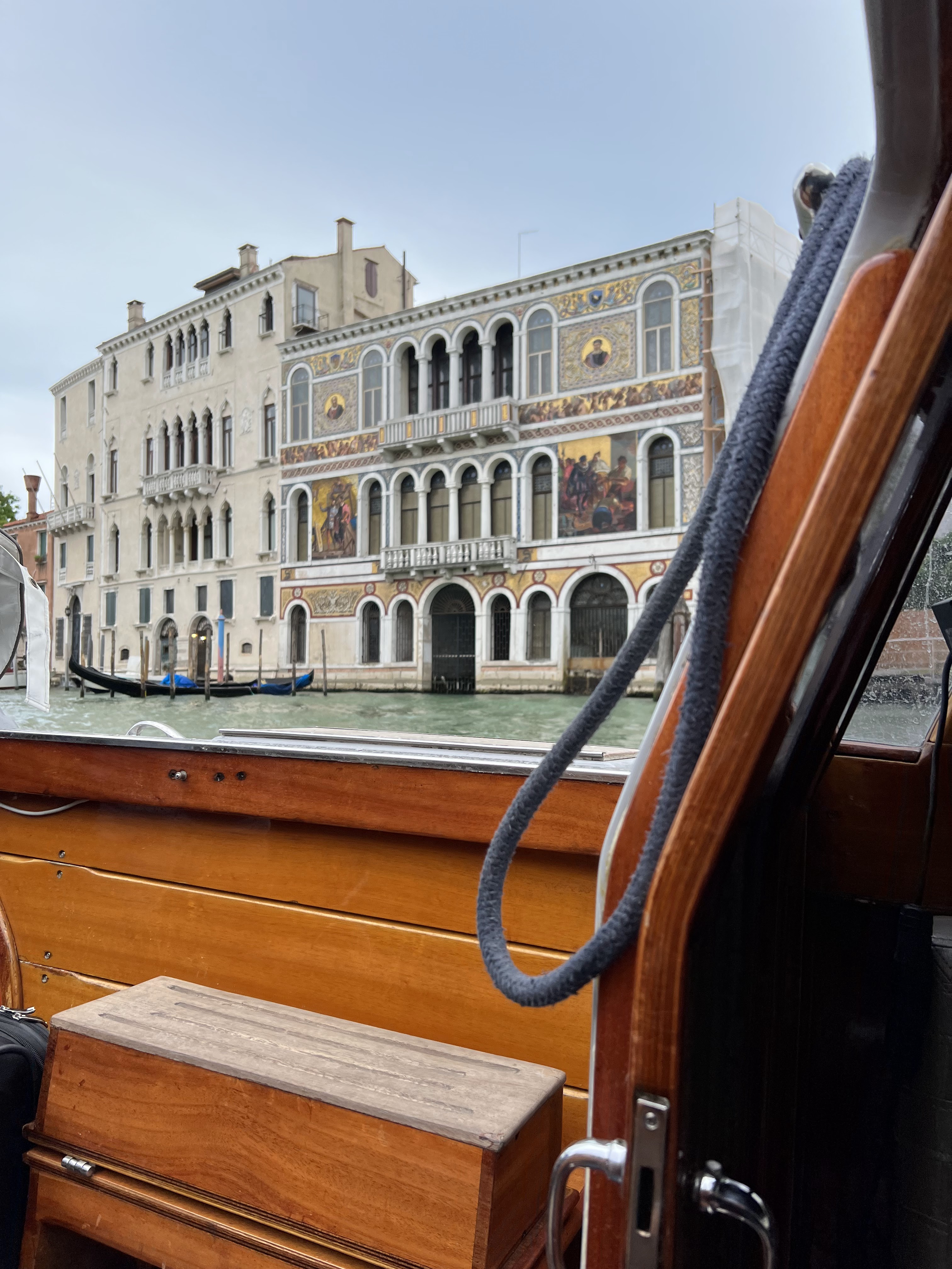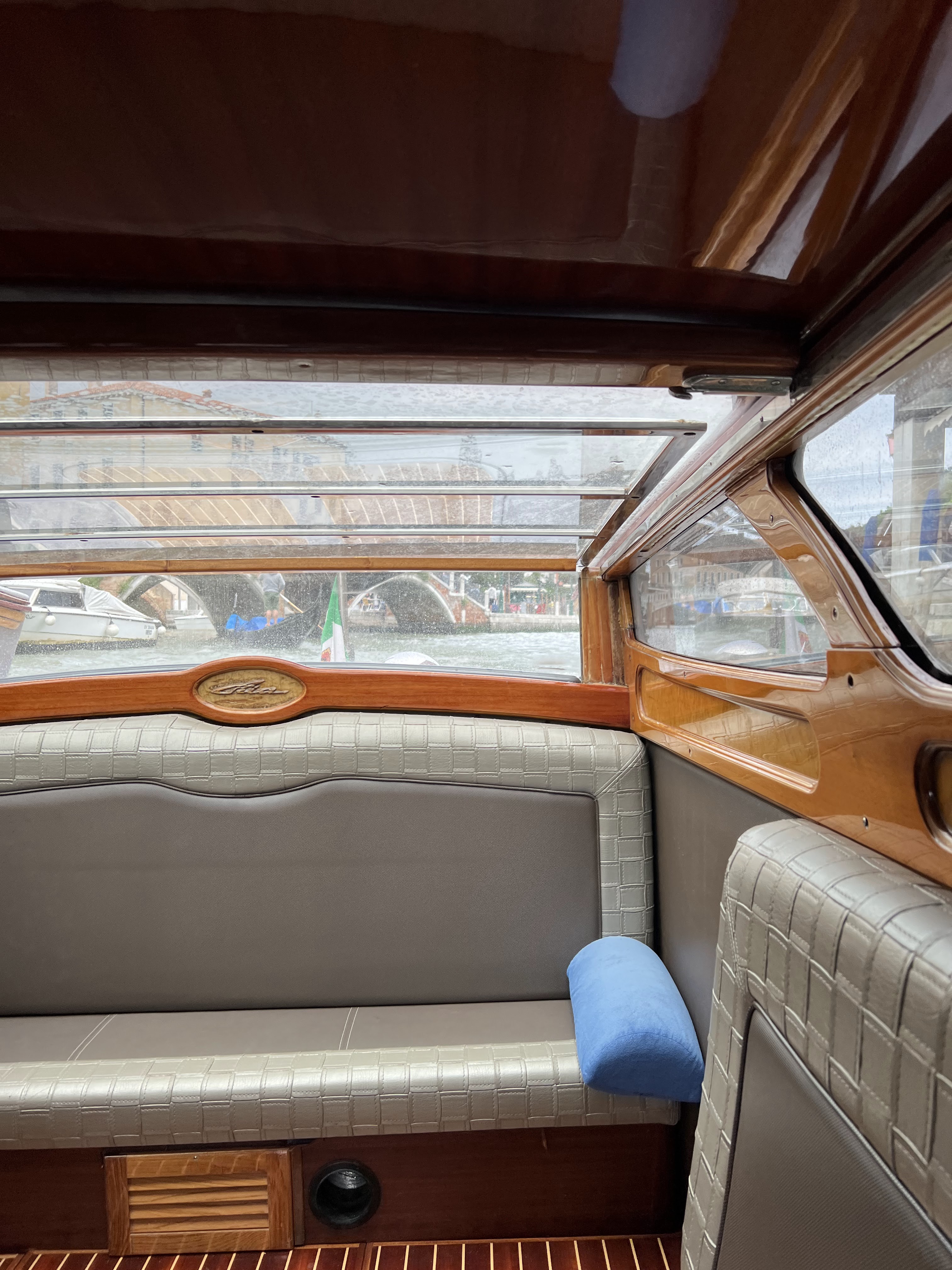 The water taxis that run along the Grand Canal in Venice are really nice, like overgrown Chris-Crafts from the 60’s before they started to use fiberglass. Also kind of expensive, we took this one from the train/bus/taxi terminal to our hotel and it was €60. On the way back two days later, we took a water bus instead. The taxi drivers all know each other and holler at each other in Italian as they pass. It’s one thing to know intellectually that there are no cars in Venice, it’s another thing to experience waterways and boats in person.