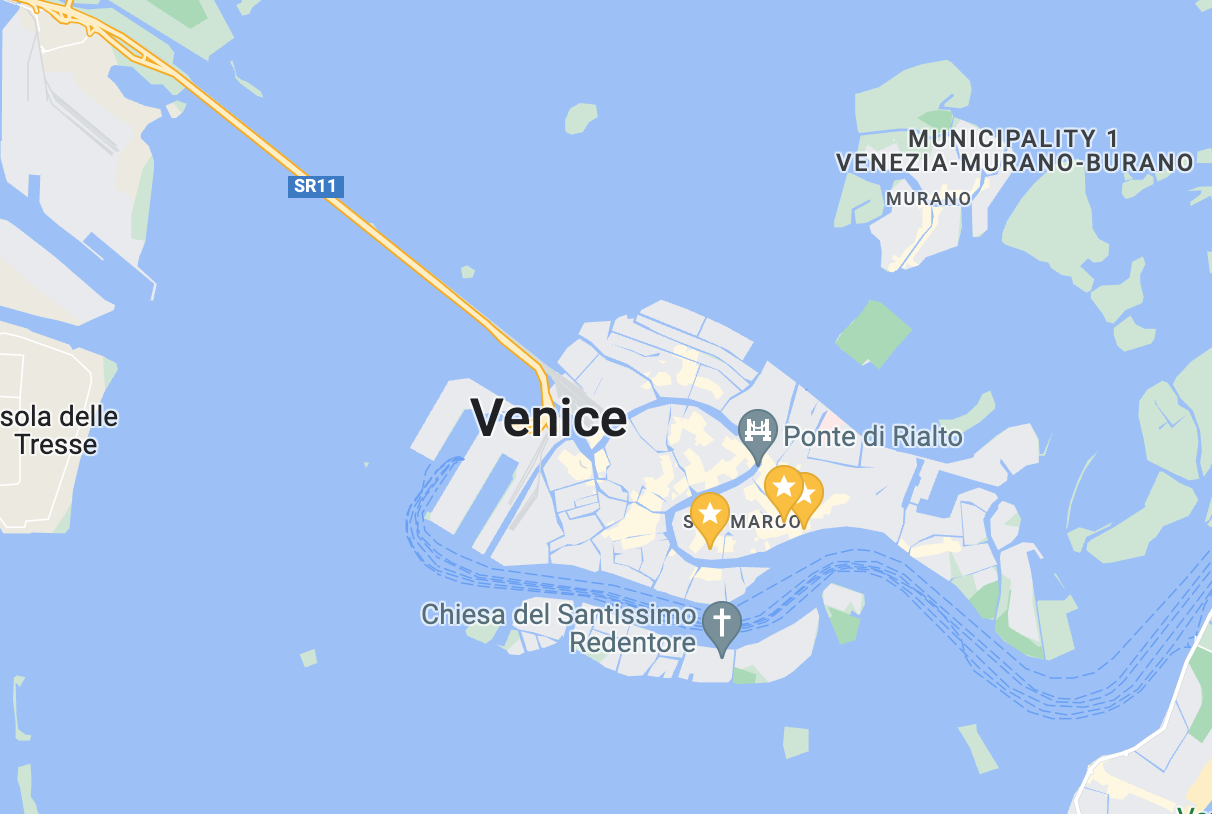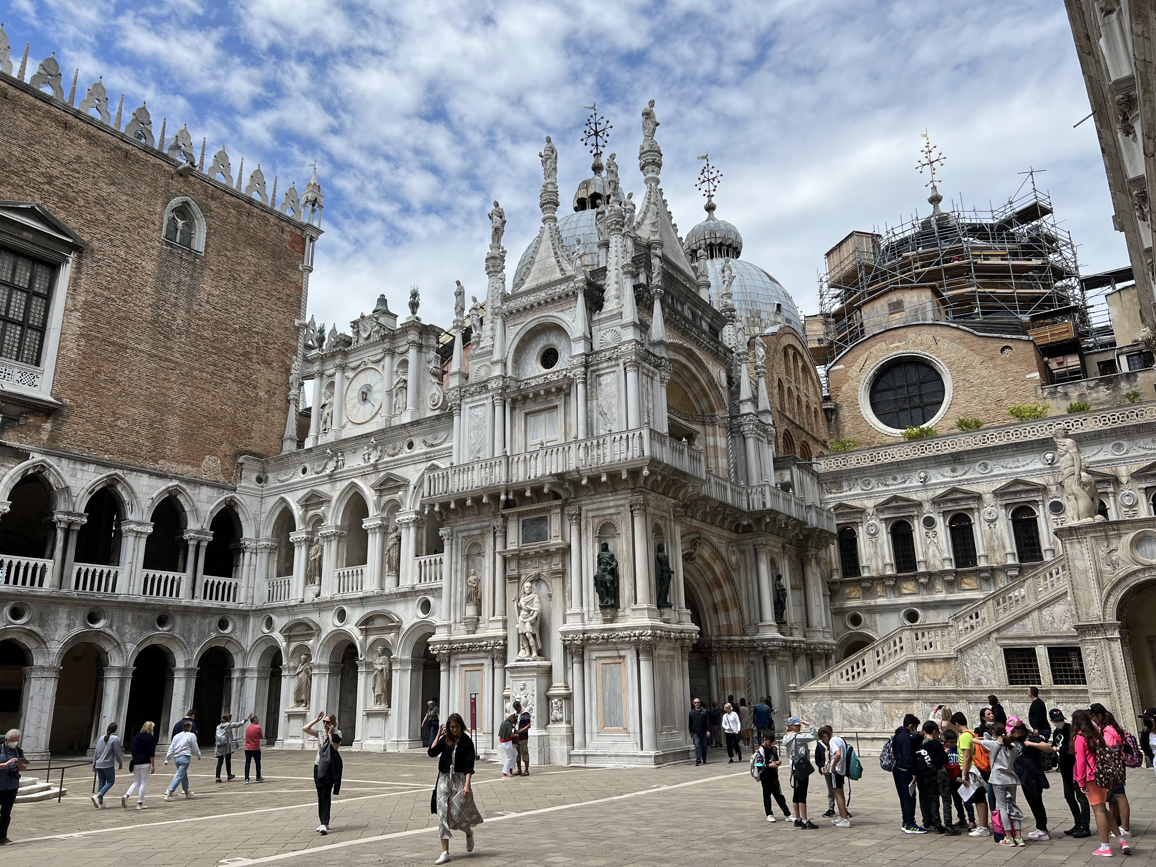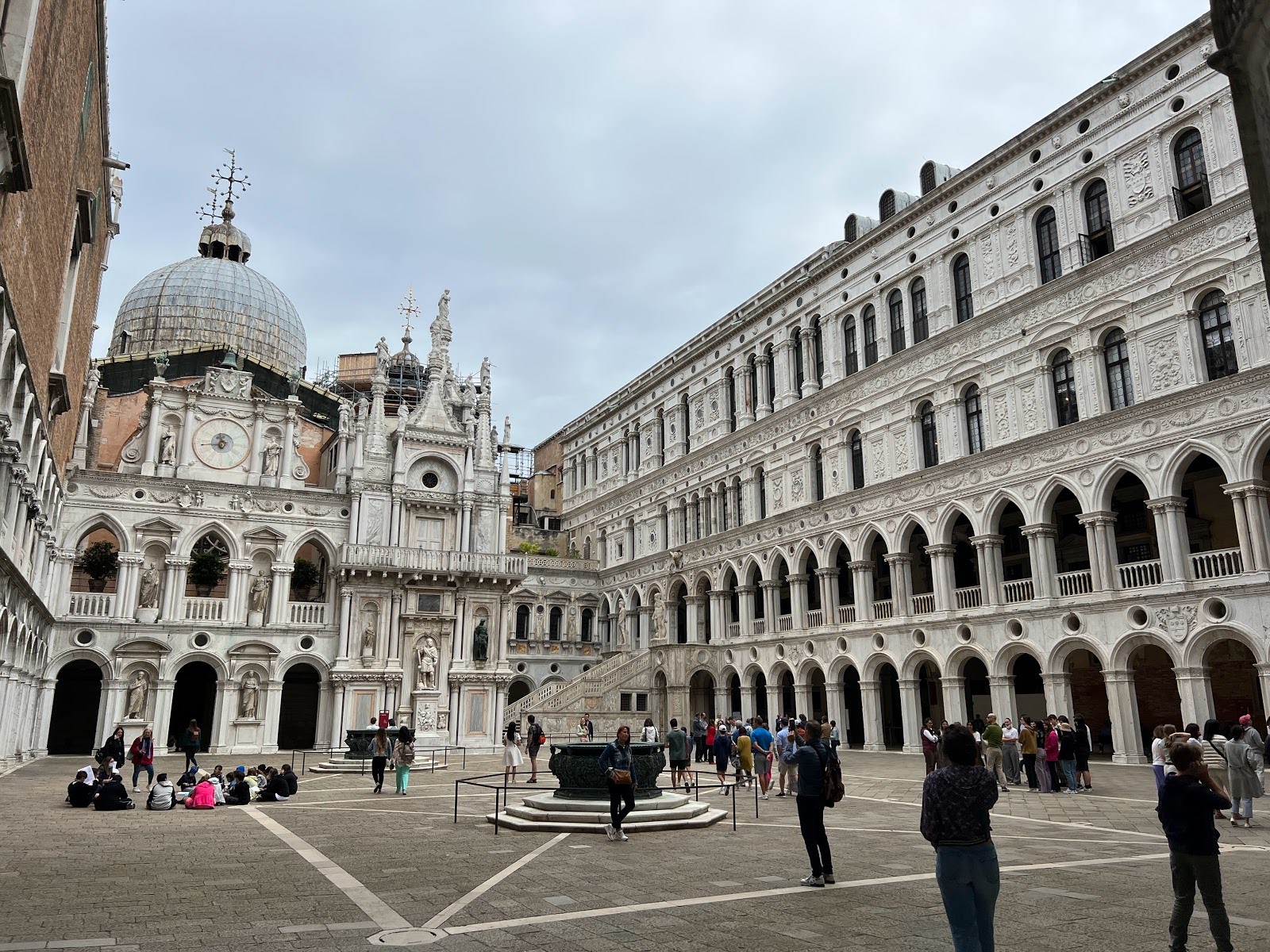 Venice, though small by square area, contains multitudes. Here you can see the main area we were able to cover in a couple days, particularly our hotel, Piazza de San Marco (St. Mark’s Square), and the Doge’s Palace.
