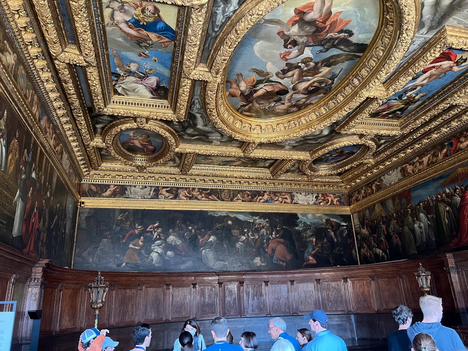 Top right: One of the main halls in the Palazzo Ducale, covered in scenes from Venetian history. Really a stunning space, and not the only one of its size in this building. The Venetians were vedy reech.