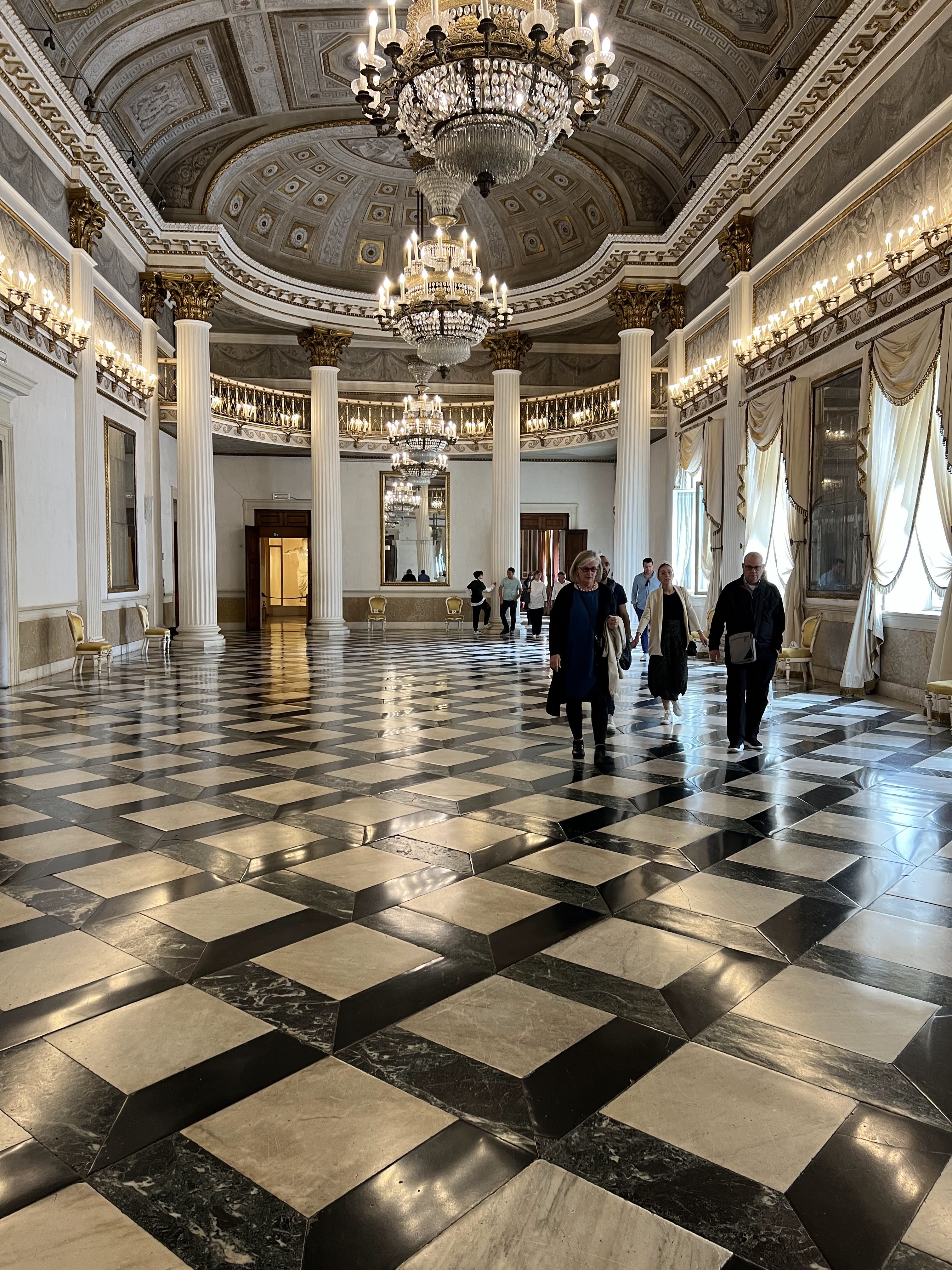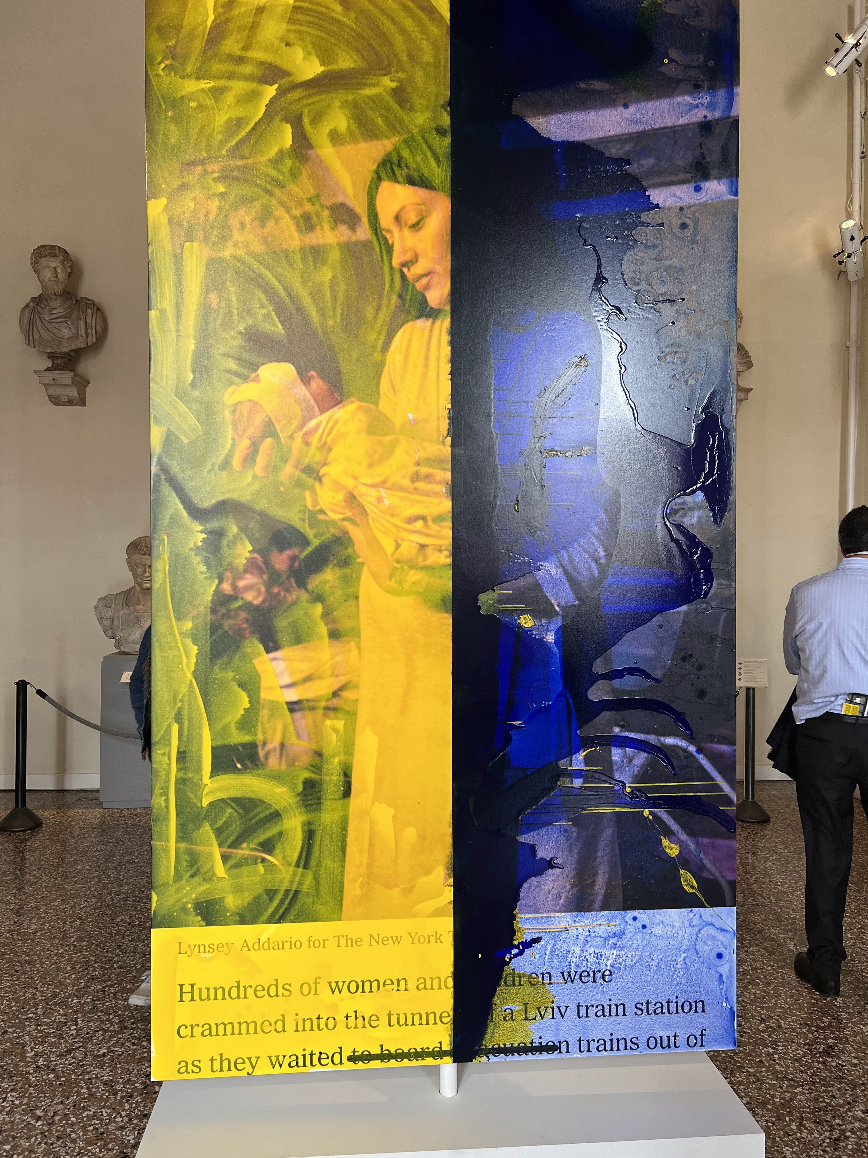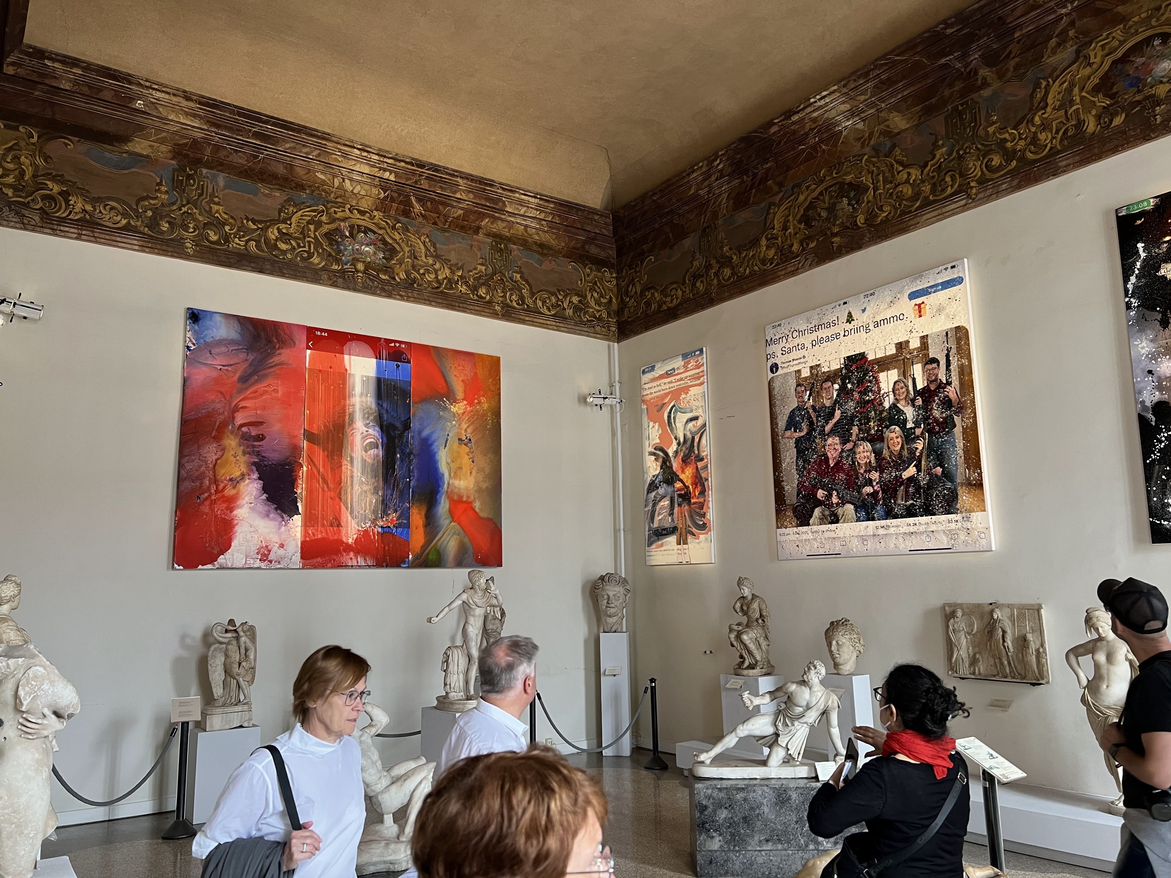 Bottom left: This space was trying to counterpoint sculptures of the Gauls (highlighting Rome’s violent conquests) with images of contemporary tensions (e.g. January 6, see the QAnon Shaman on the left).