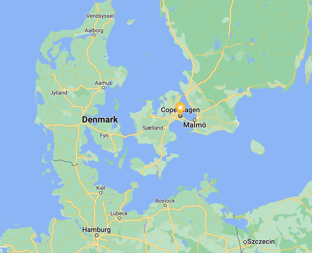 You can see our hotel starred in yellow, showing the proximity to the extensive canal network of Copenhagen. But more importantly, Copenhagen (and most of Denmark really) is just sticking out into the Baltic Sea and it was our experience that traveling through Denmark is an exercise in crossing bridges of all shapes and sizes.