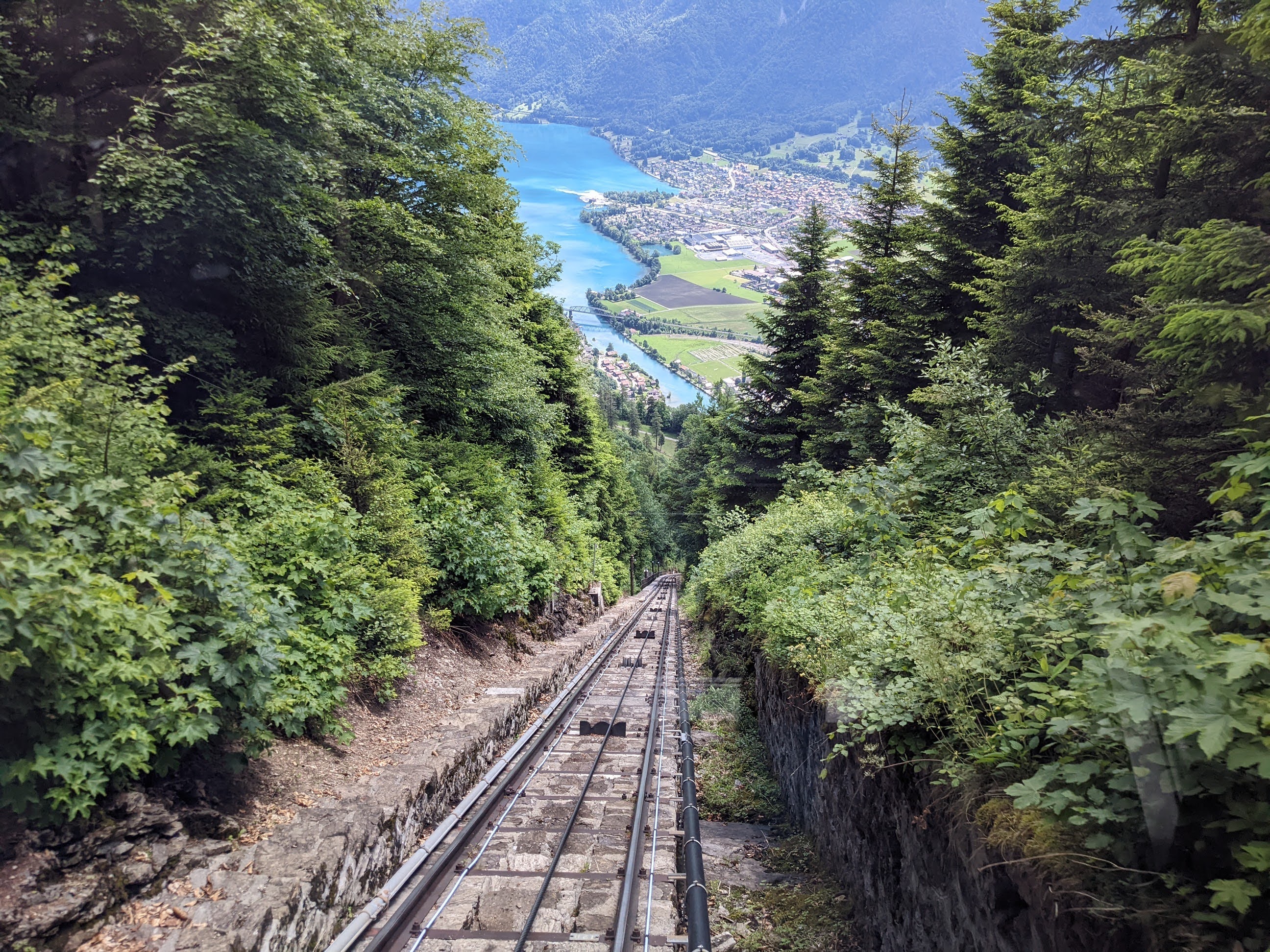 The day was still young! That means it was time for some funiculation, that is, the action of taking the funicular up Harder Kulm, the mountain that is the “top of Interlaken.”