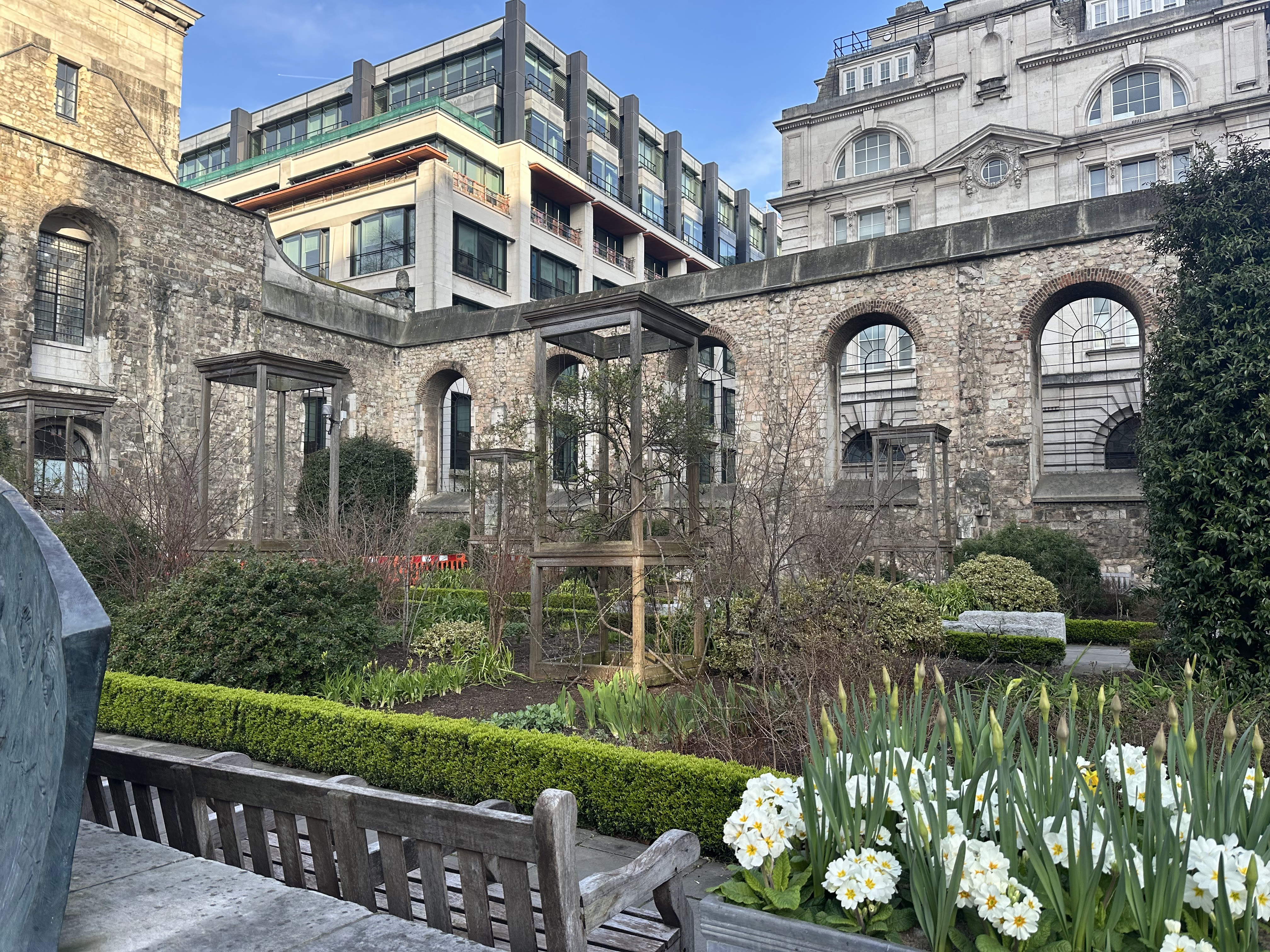 We had a quick wander around the remains of Christchurch Greyfriar’s, of which only some wall components and a side wing remain after WWII. A lovely garden and memorial create a tiny oasis in the midst of post-modern development all around. There was something incredibly surreal about standing in the middle of the courtyard, spying into both the adjacent cathedral and a high-rise apartment complex concurrently, and feeling acutely the passage of time.