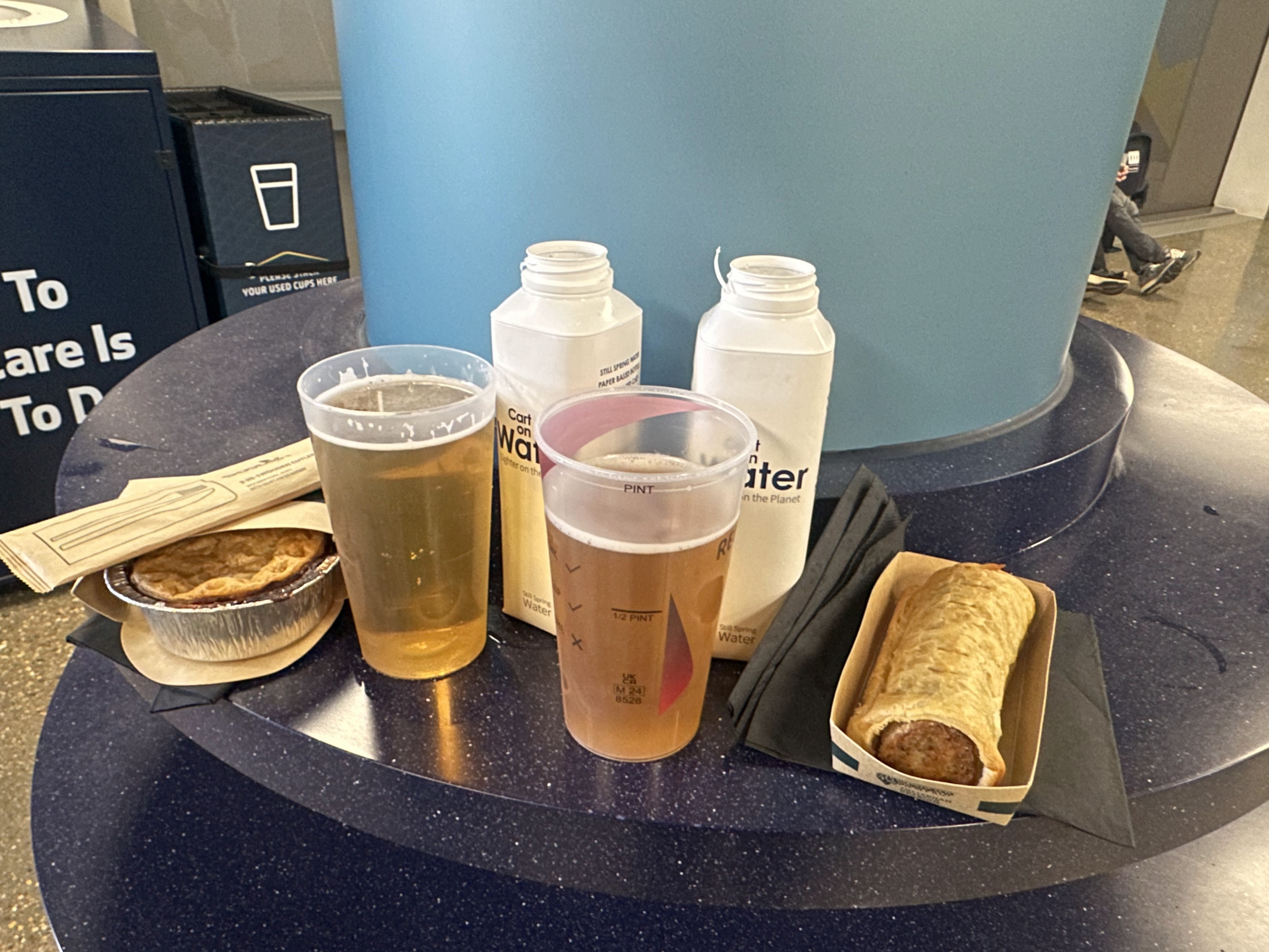 Sausage rolls, cold beer, water that comes in boxes! What more could you want? In this stadium from the future, no seat is a bad seat. What a great day for the unaffiliated spectator. My favorite part was when they brought Dad down to the pitch so they could interview the man who broke a Guinness World Record for most Newcastle references at a Tottenham match.